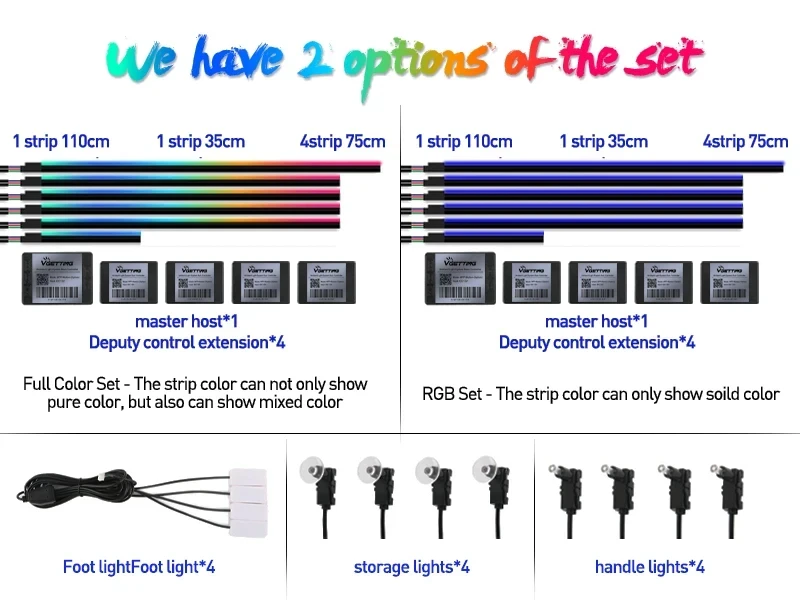 - Item Type : 18 in 1 ( 6 * LED strip(110cm*1+75cm*4+35cm*1 + 4 * Footlight + 4 * Door bowl lights + 4 * Storage lights)