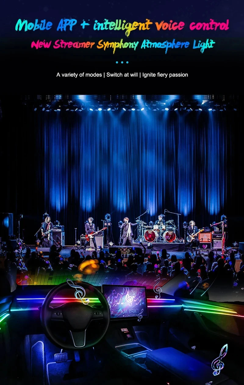 Equipped with RGB car LED strips, 22-in-1 64 colorful symphony car decoration atmosphere lights, you can create your own unique color and choose your favorite DIY modes to perfectly enhance your car. Creating a romantic and beautiful atmosphere for your car and making the journey more varied and interesting! Let our Car LED Light Bars adorn your car, light up your life and make night’s driving more fun!