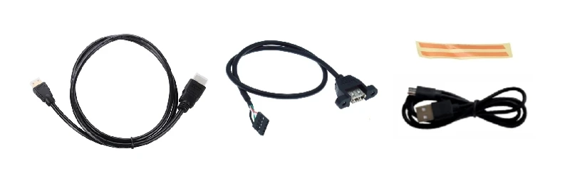 7 inch 1024x600 LCD display kit, come with mini HDMI driver board, mini HDMI cable, micro USB power cable, USB cable for mother board, double side adhesive tape to fix the display into the case.