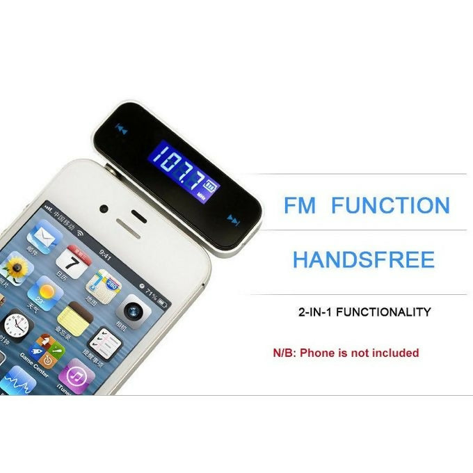 - Upgrade your car audio experience with the New 3.5mm In-Car Handsfree LCD Audio FM Transmitter.