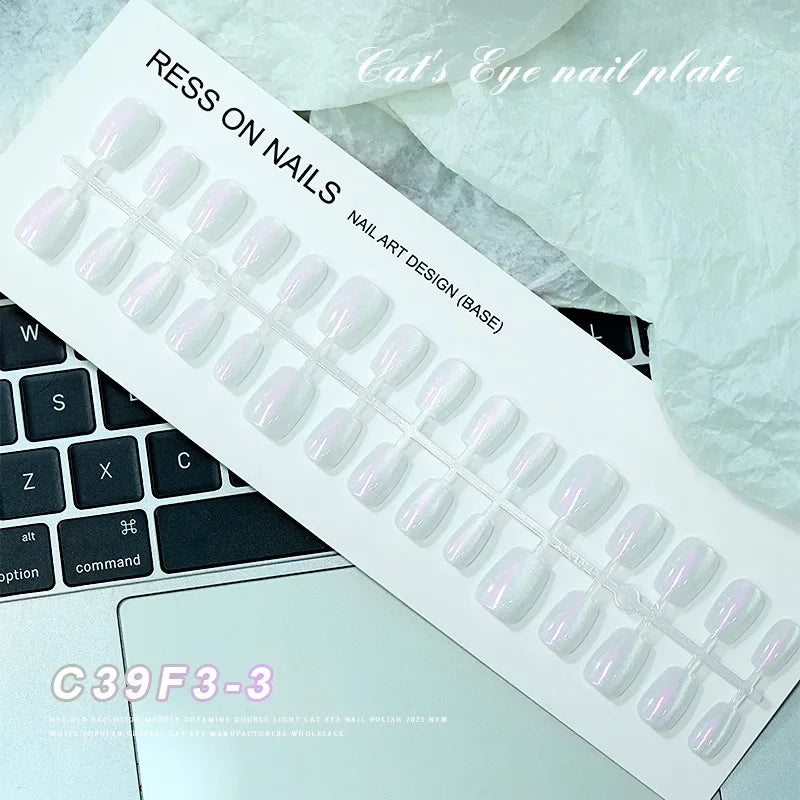 New 30Pc Cat Eyes Effect Press On Nails UV Gel Magnetic Cat Eye Fake Nails Handmade Artificial Nail Tips with Adhesive for Girls