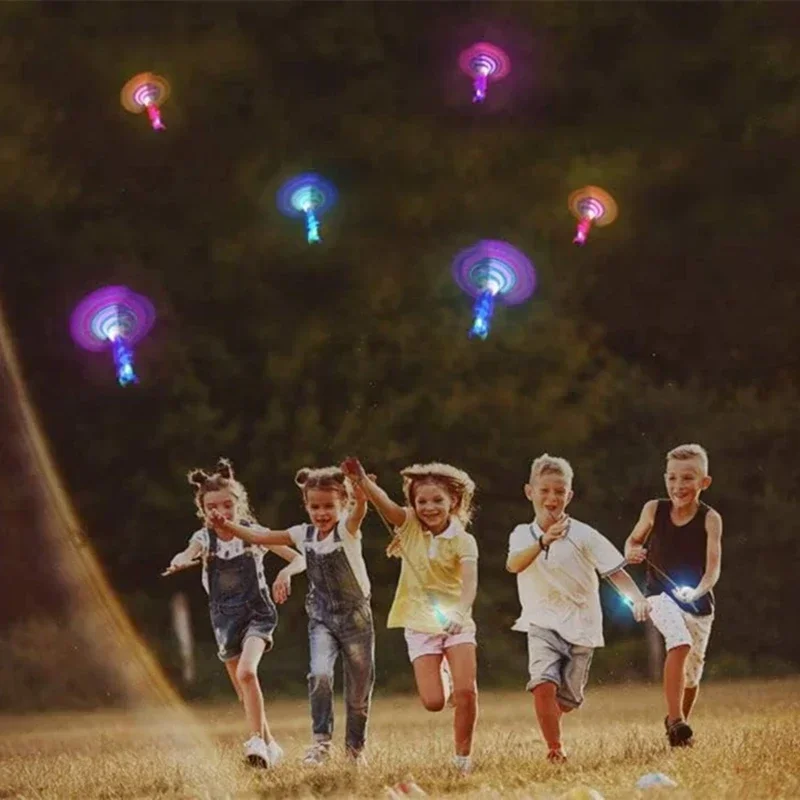 New 50/30/10/5/1 Super Cool Lighted Toys Flying Spinning Toys LED Lighted Toys Best Gift for Kids Rubber Band Slingshot