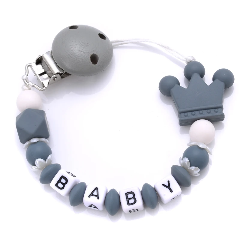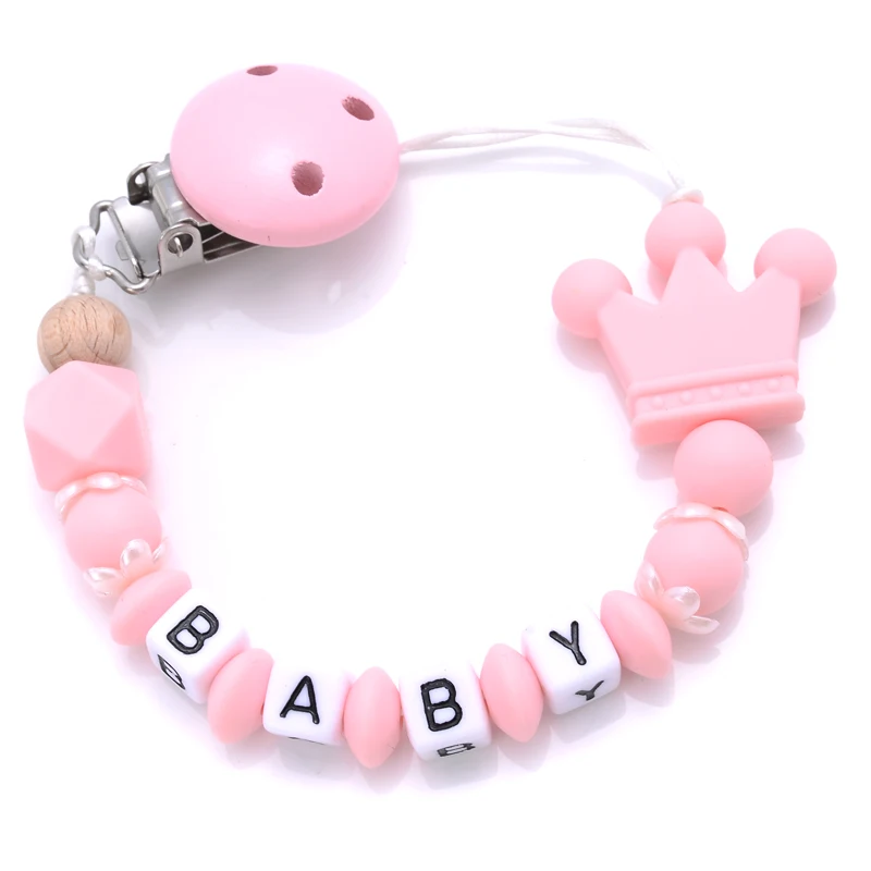 New Baby Crown Pacifier Clips Silicone Pacifier Chains Handmade Toddler Teething Chain Nipple Clip Chew Toys Not Customized