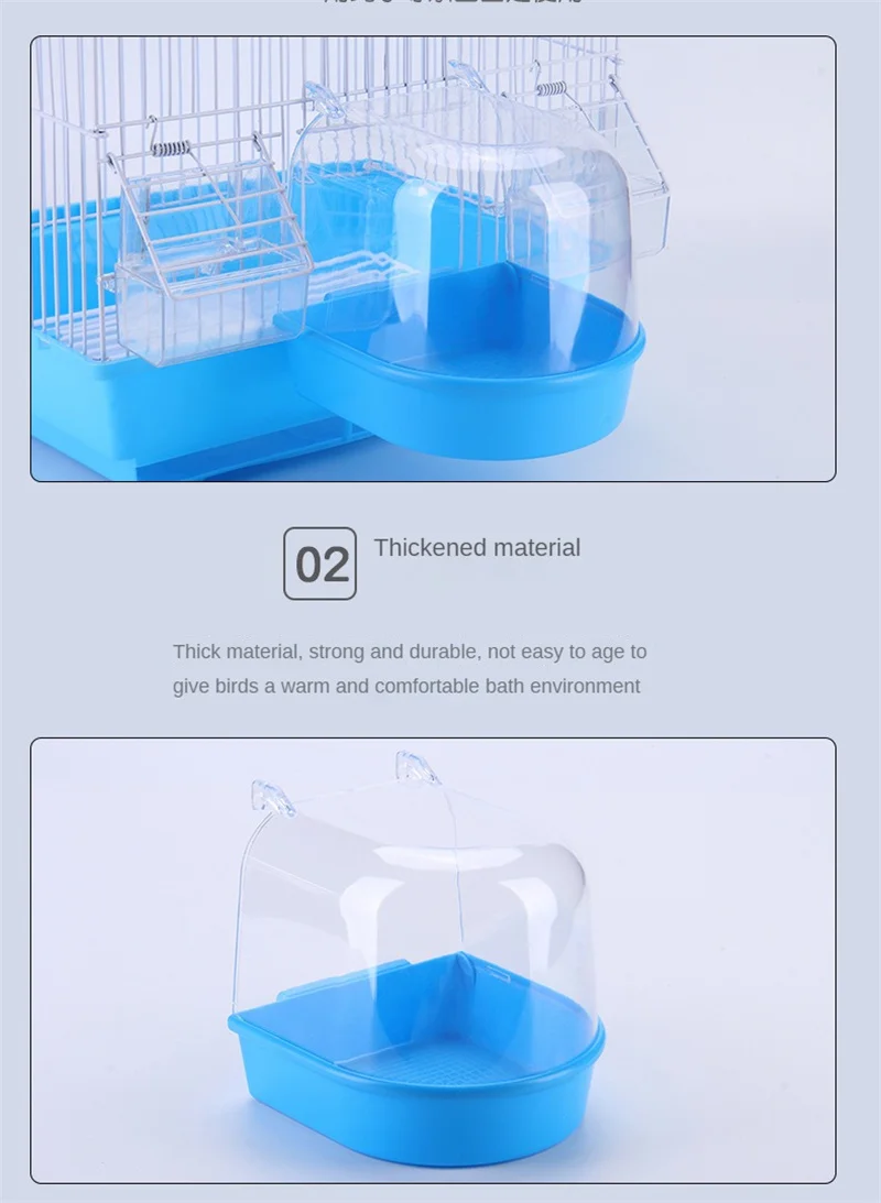 New Clear Bird Bath for Cage Parakeet Bird Cage Accessories Hanging Bird Bath Box Parrot Bird Bathing Tub with Clear View