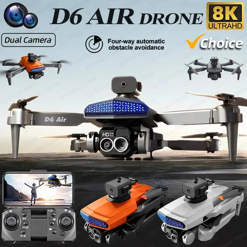 New D6 Air Drone 8K Professional 4K HD Dual ESC Camera Optical Flow 540°Obstacle Avoidance WIFI FPV RC Foldable Quadcopter Dron