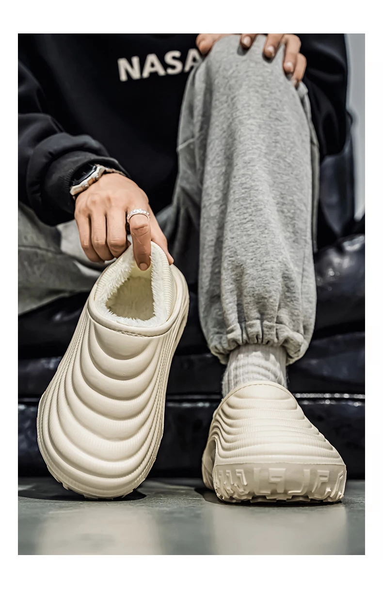 New Fashion Cotton Men's Slippers Winter Warm Plush Men Slippers Waterproof Men Garden Shoes Indoor Outdoor Men's Warm Shoes