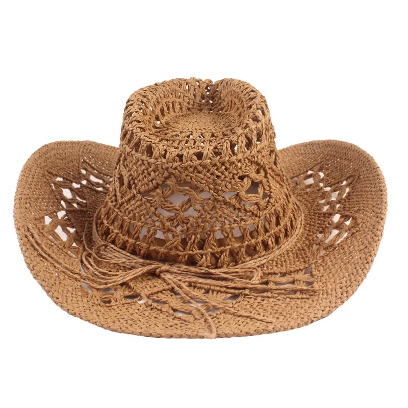 New Fashion Hollowed Handmade Cowboy Straw Hat Round Collapsible Western Cowboy Beach Hat Photo Props Western Sunshade Cap