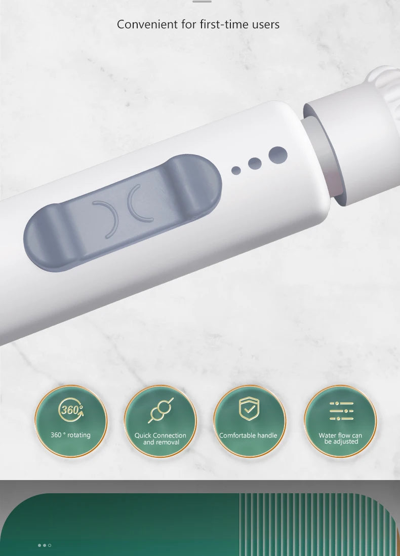 In addition to cleaning of teeth and oral cavity.Meike Oral lrrigator can also help clean vegeta-bles and fruits such as strawberry, lotus roothole, and shrimp to remove the pesticides onthe surface.Moreover, it can even wash milkbottles, ceramic tile doors and window gaps.