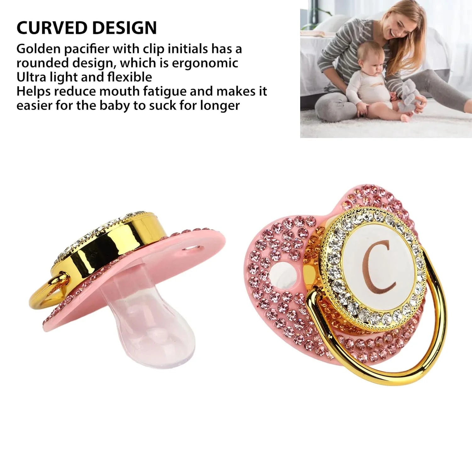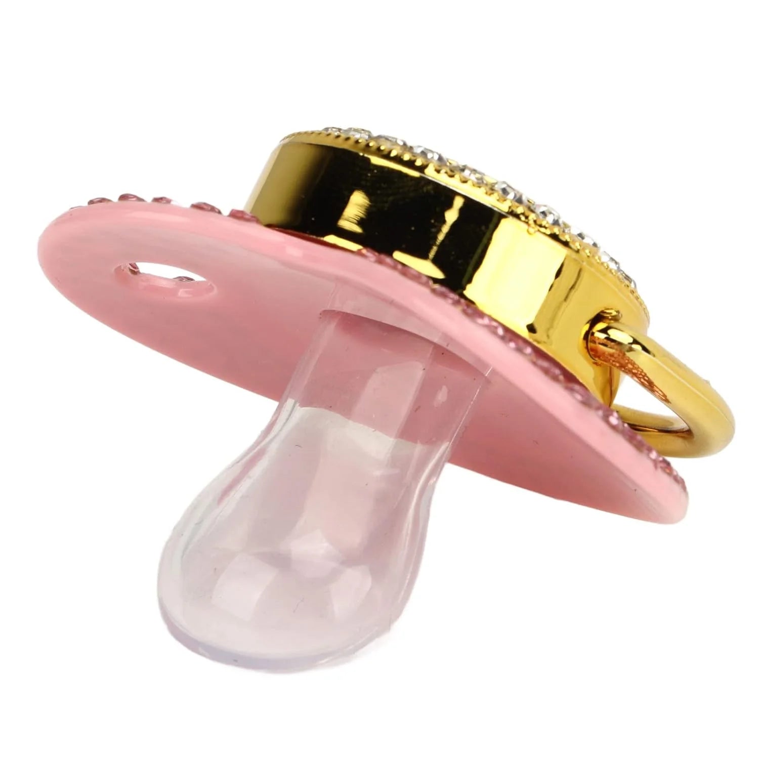 New Full Diamond Pink Letter Pacifier Photo Accessories Baby Pacifier with Jewelled Chain Clip Teether Toys Bite Resistant