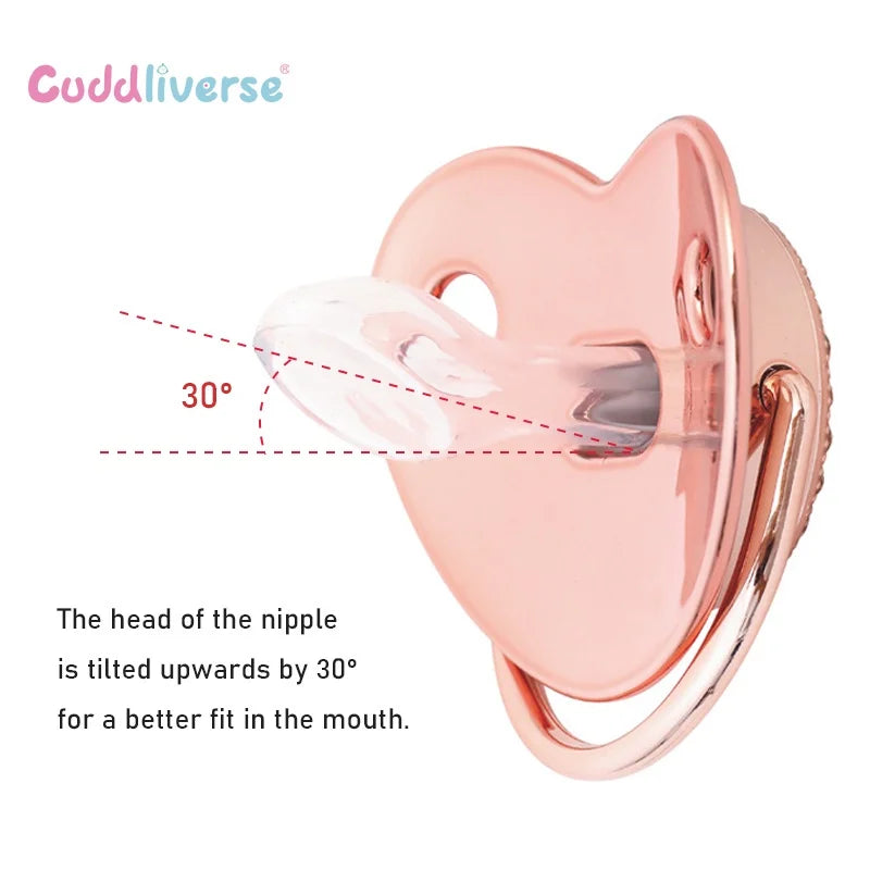 2. According to the characteristics of the baby's oral development, the head of the pacifier up 30 ° tilt angle design, more close to the mouth, closed in place, reduce the displacement of milk teeth, prevent buck teeth