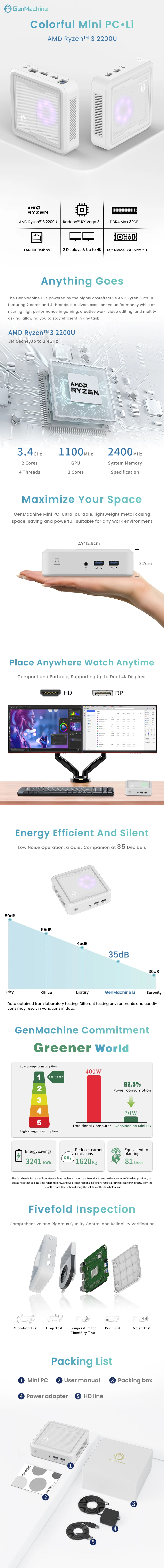 New Genmachine AMD Ryzen 3 2200U Up to 65W Mini PC DDR4 NVME SSD Wifi5 Bluetooth 4.2 Gaming Computer RX Vega 10 Graphices