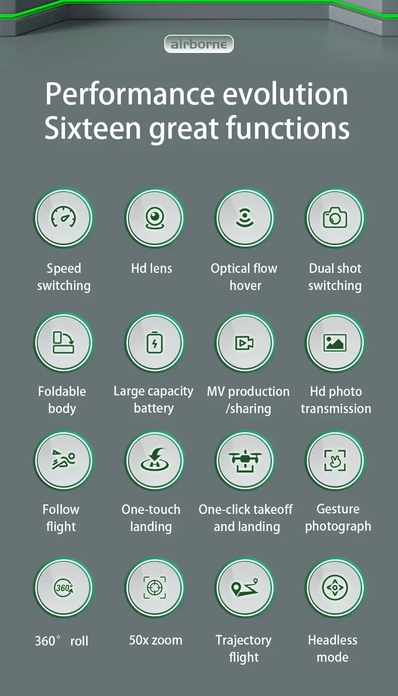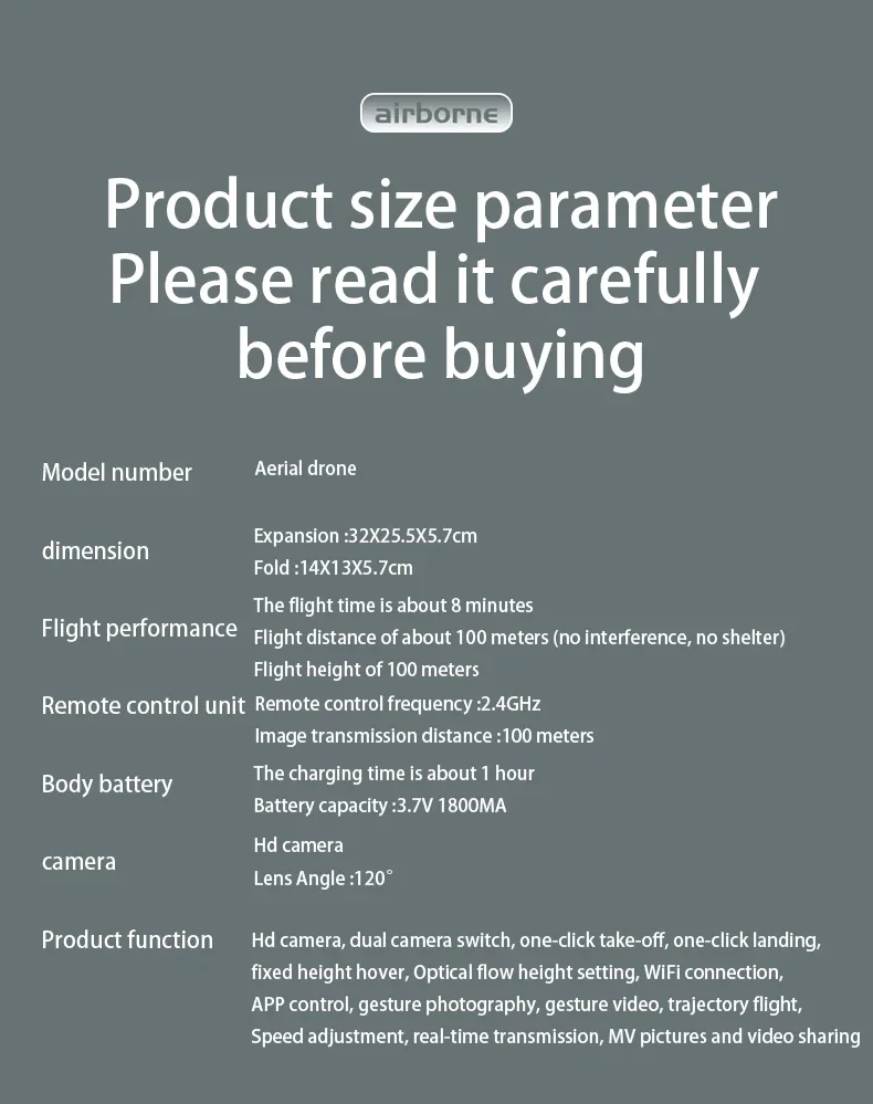- The quadcopter fuselage is made of high strength and resistant engineering plastics,lightweight and durable resistance.