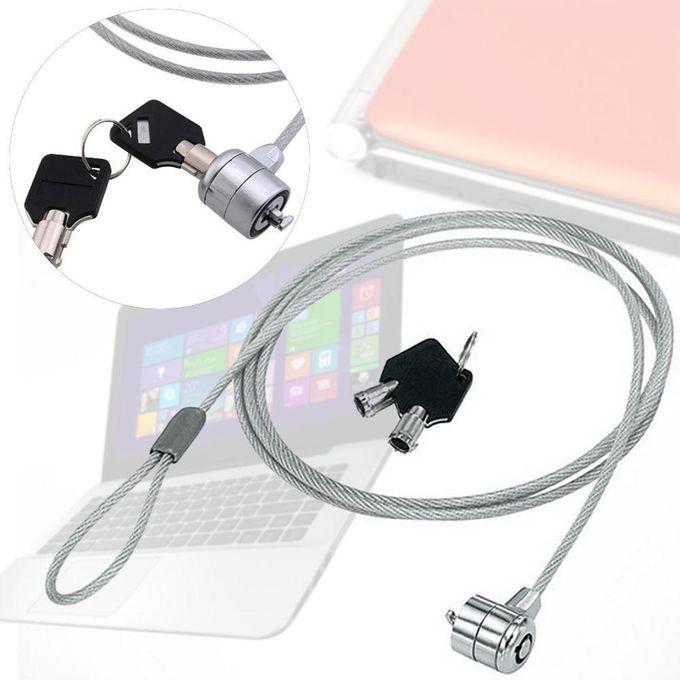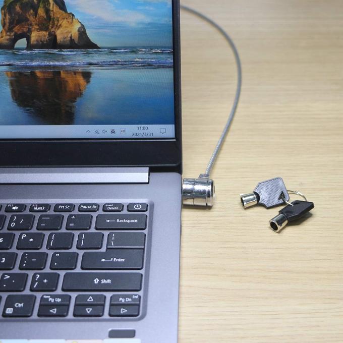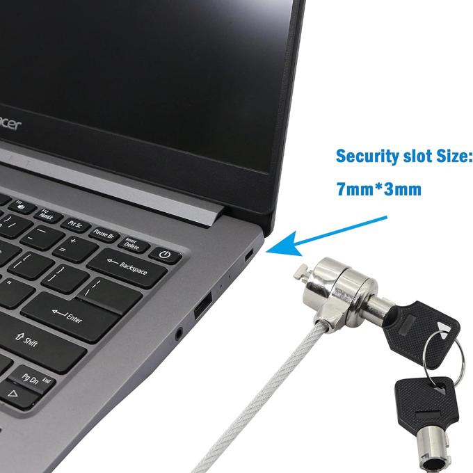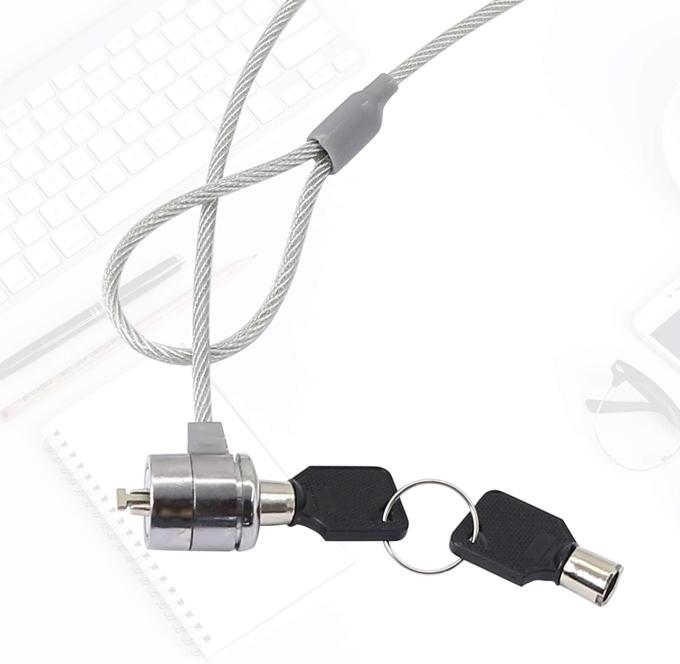 - A laptop lock with a key is a braided steel cable that provides anti-theft functions for laptops.