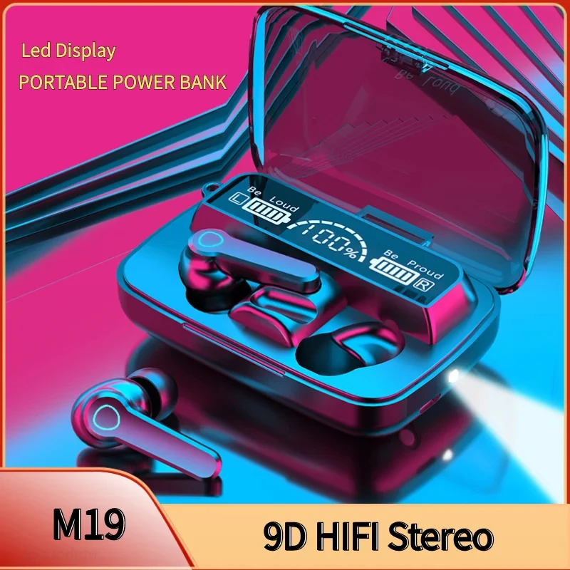 NEW M19 TWS Bluetooth Headphones 9D High Fidelity Wireless Headphones Touch Digital Display Headphones