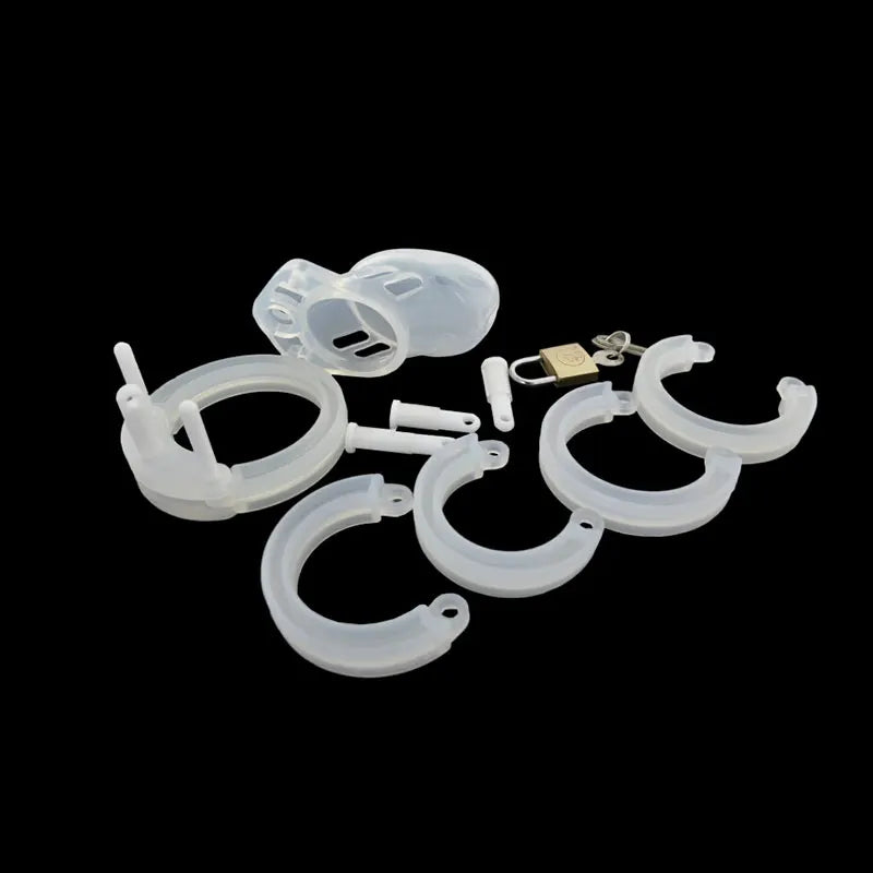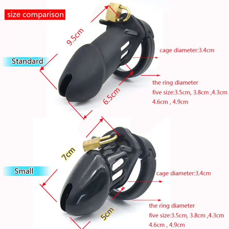 New Male Silicone Chastity Device Cock Cage Sex Toys With 5 Penis Ring Adult Belt Brass Lock Standard/Short Cage A122/A235