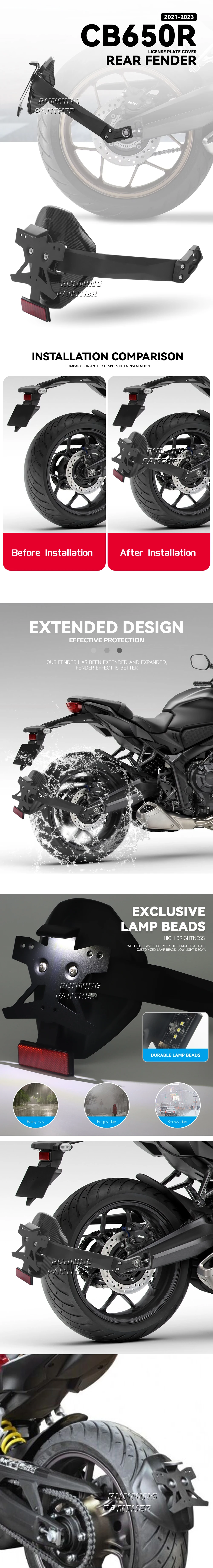 NEW Motorcycle Rear Wheel Mudguard Fender With License Plate Holder LED Light For Honda CB650R CB 650 R CB 650R 2021 2022 2023