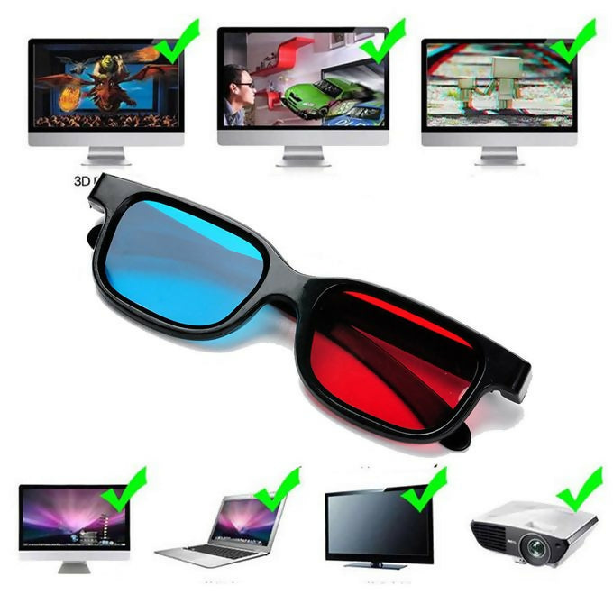 New Red Blue 3D Glasses Frame Anaglyph TV Movie DVD Game