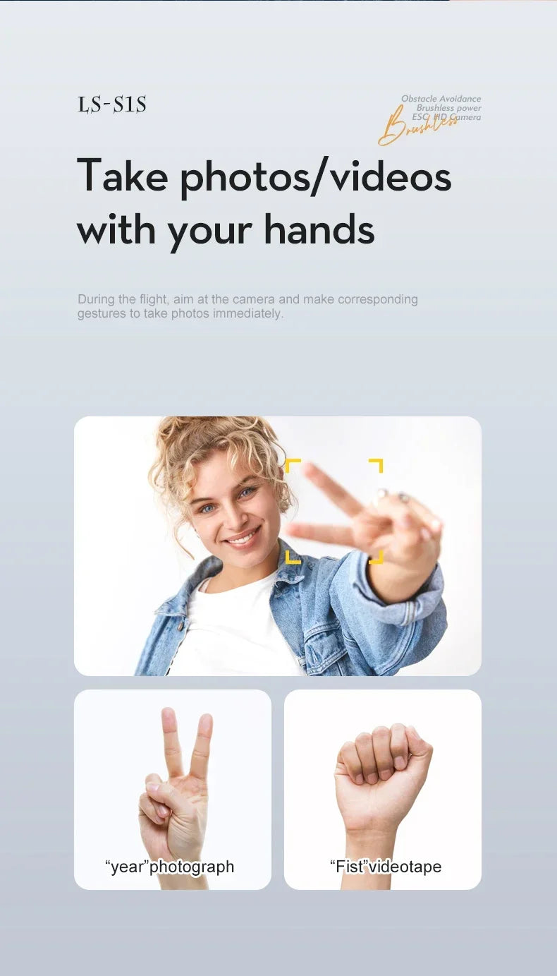 6. Hand gesture photography, optical flow positioning, brushless motor, ultra long endurance, obstacle avoidance head assembly, which can stop when encountering obstacles without colliding with them