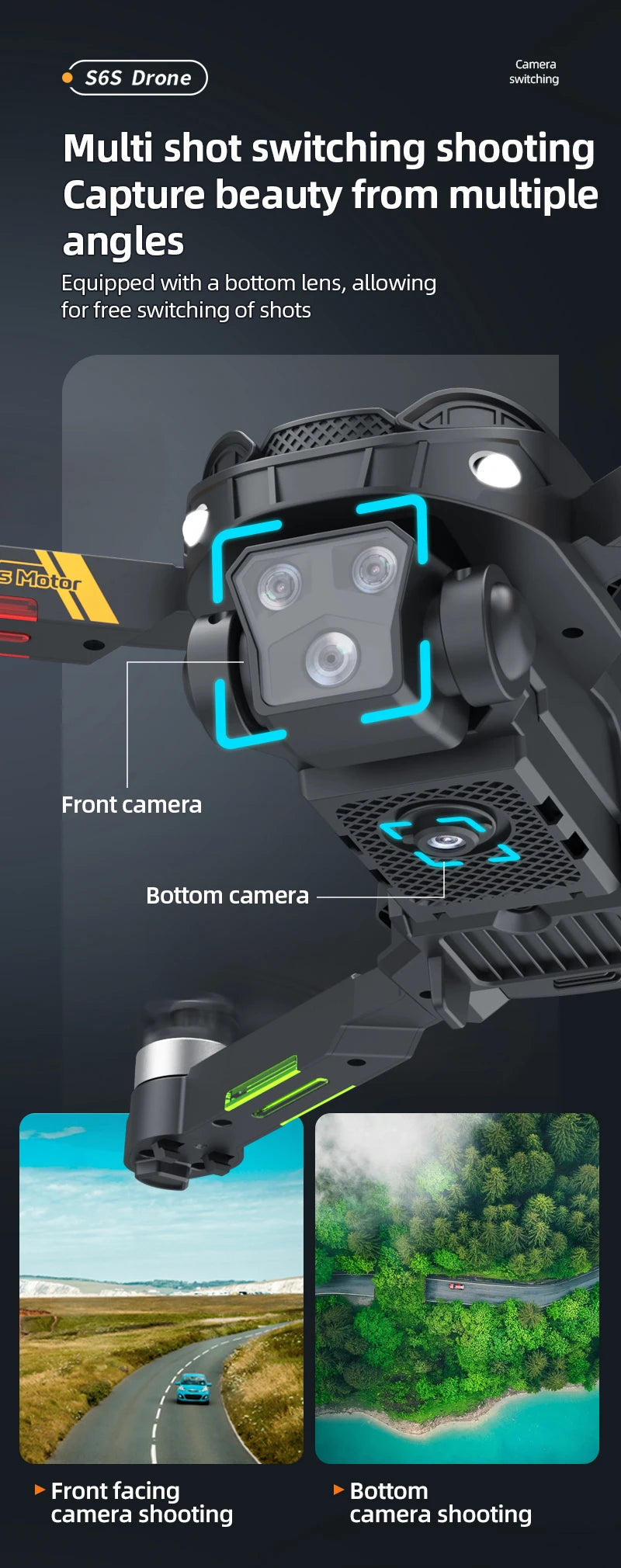 1. The front lens is placed with wide-angle 8K high-definition WIFI, and the optical flow high-definition lens at the bottom can switch the camera angle. The servo gimbal design increases stability, adding EIS electronic anti-shake, the picture lines are clearer.