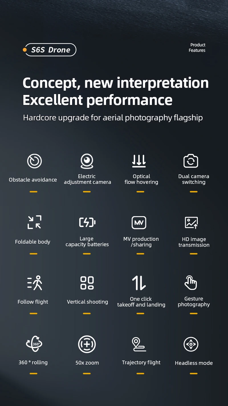 5. Gesture camera, optical flow positioning, brushless motor, super long battery life, obstacle avoidance gimbal components, no collision to stop when encountering obstacles.
