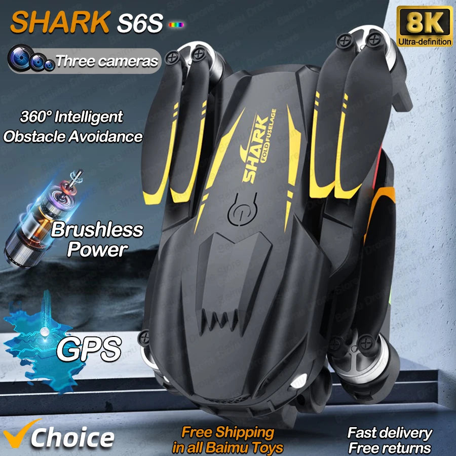 New Shark S6S 5G Brushless Drone Profissional 8K HD Camera WIFI FPV Obstacle Avoidance Optical Flow RC Foldable Quadcopter Toys