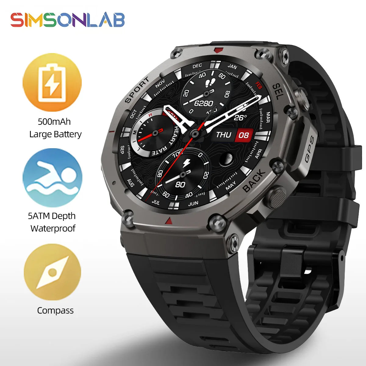 New Smart Watch 466*466 1.43 AMOLED Full Touch Screen 5ATM waterproof GPS 500mAh High Battery Compass 170+ Sports Modes For Men