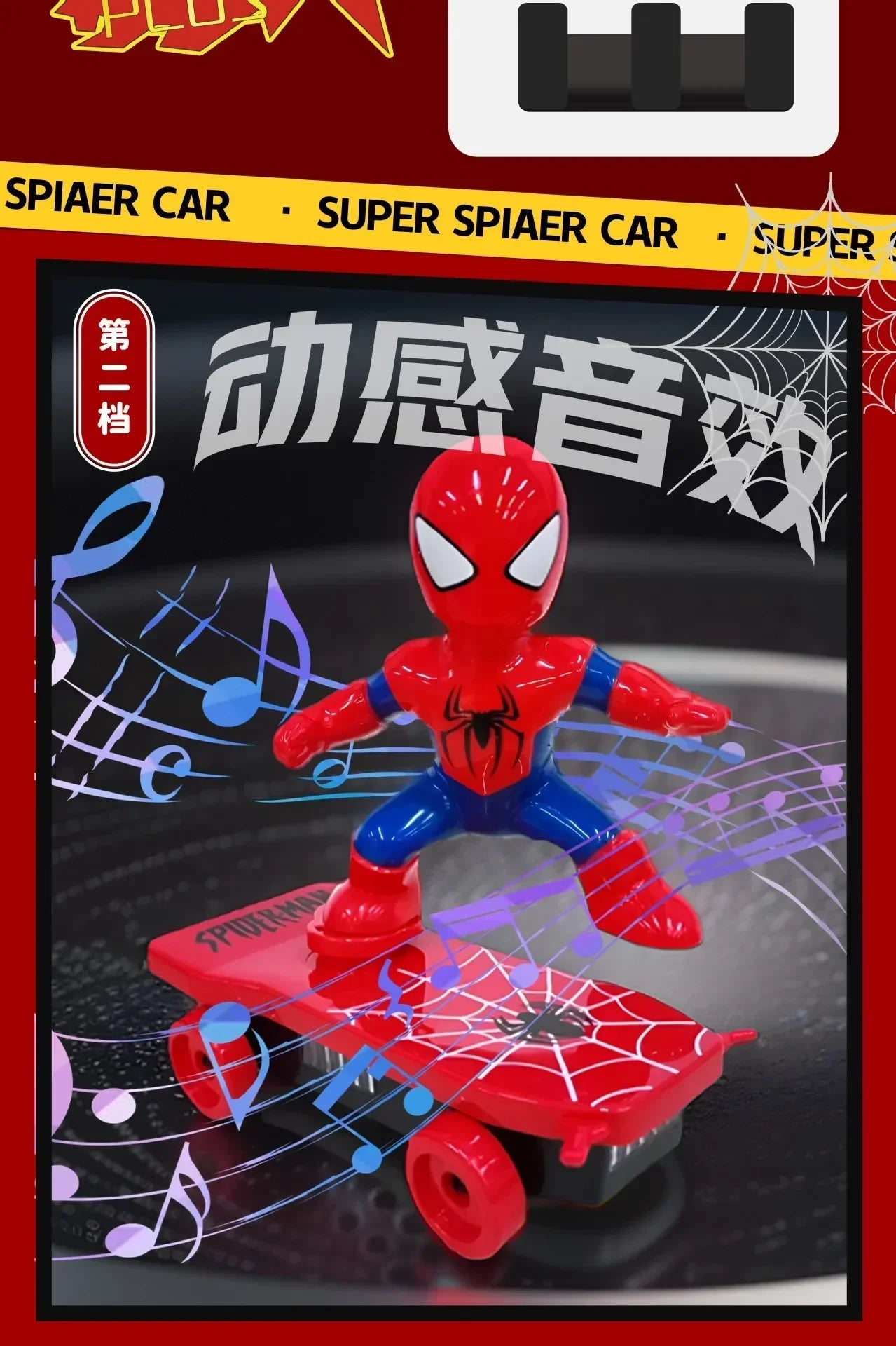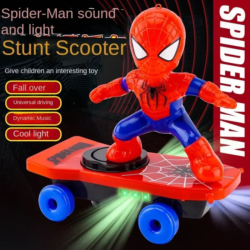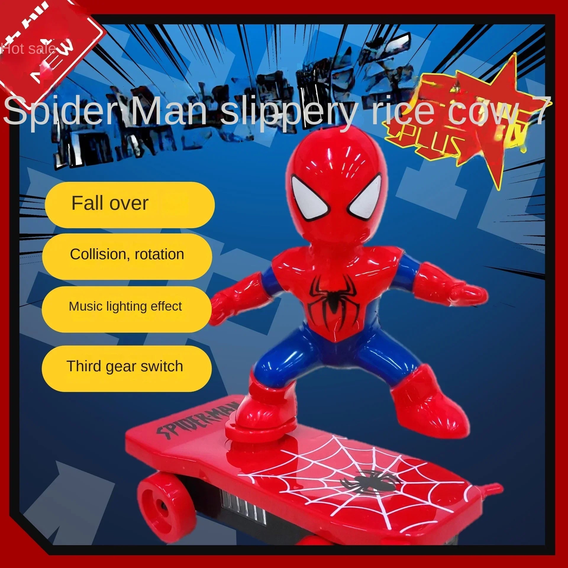 New Spiderman Automatic Flip Rotation Skateboard Acousto-Optic Car Electric Music Toy Stunt Scooters Christmas Gift Anime