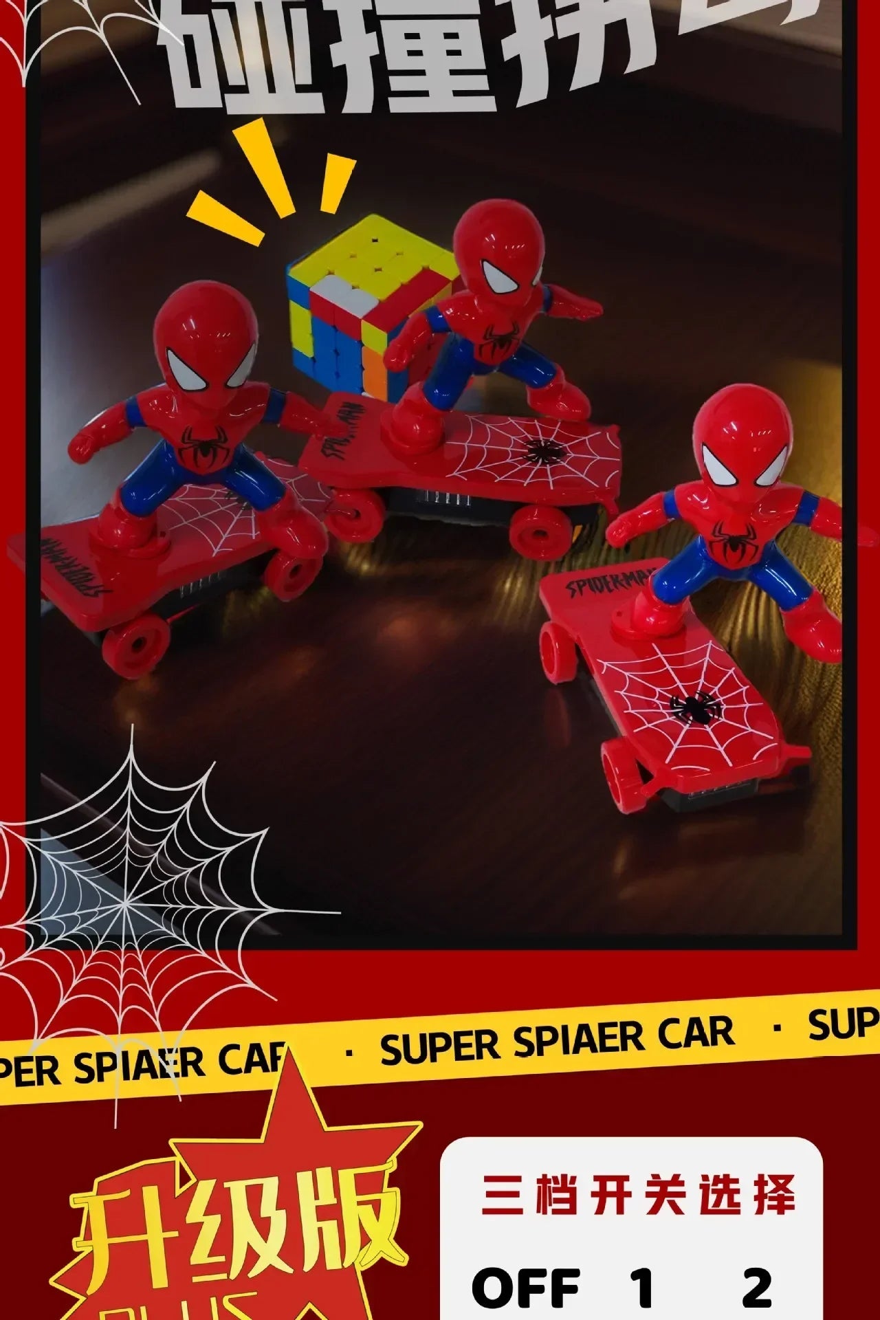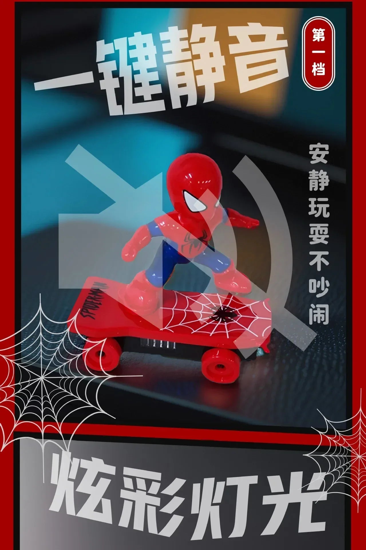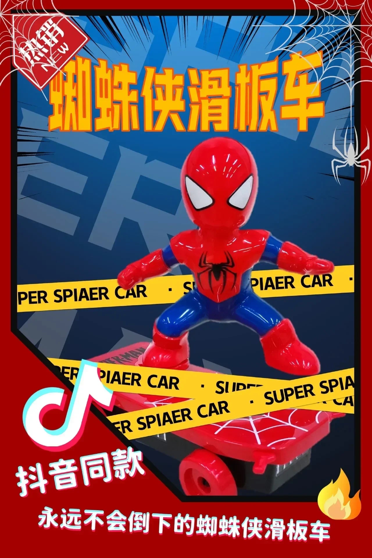 New Spiderman Automatic Flip Rotation Skateboard Acousto-Optic Car Electric Music Toy Stunt Scooters Christmas Gift Anime