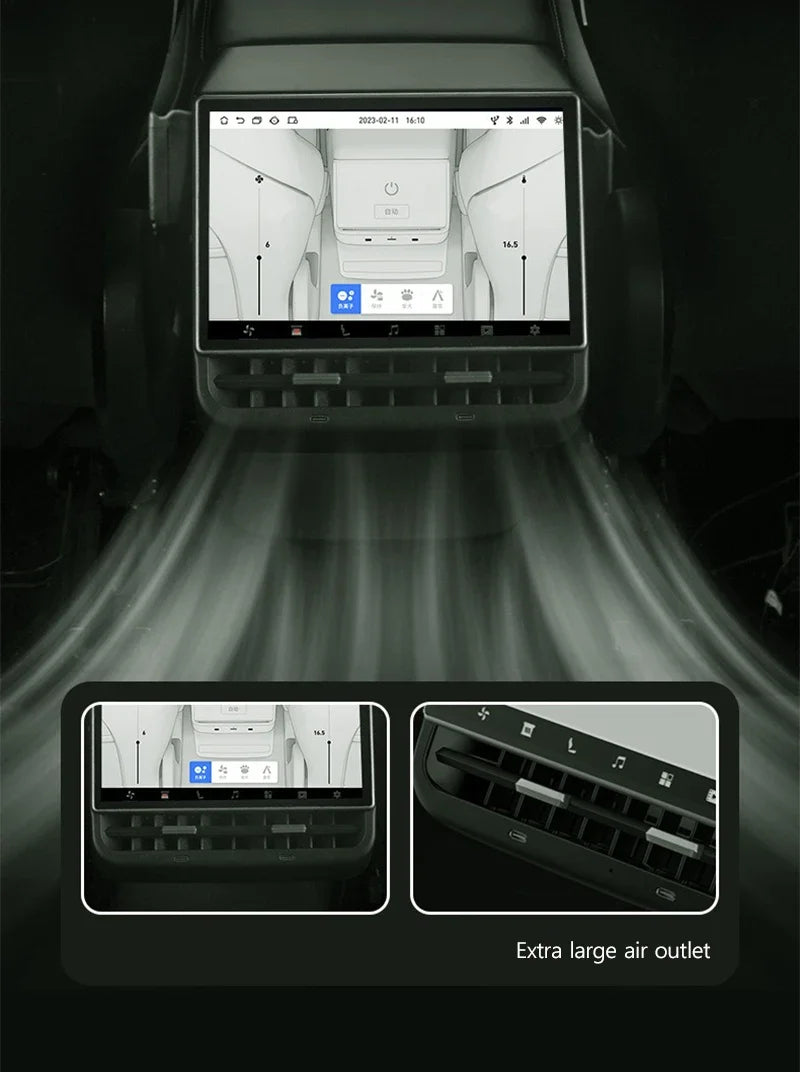 【Upgraded large air vents】 Rear display screen has launched a new upgraded air vent. The wind speed will not decrease compared to the original car, enjoying a comfortable blowing experience.