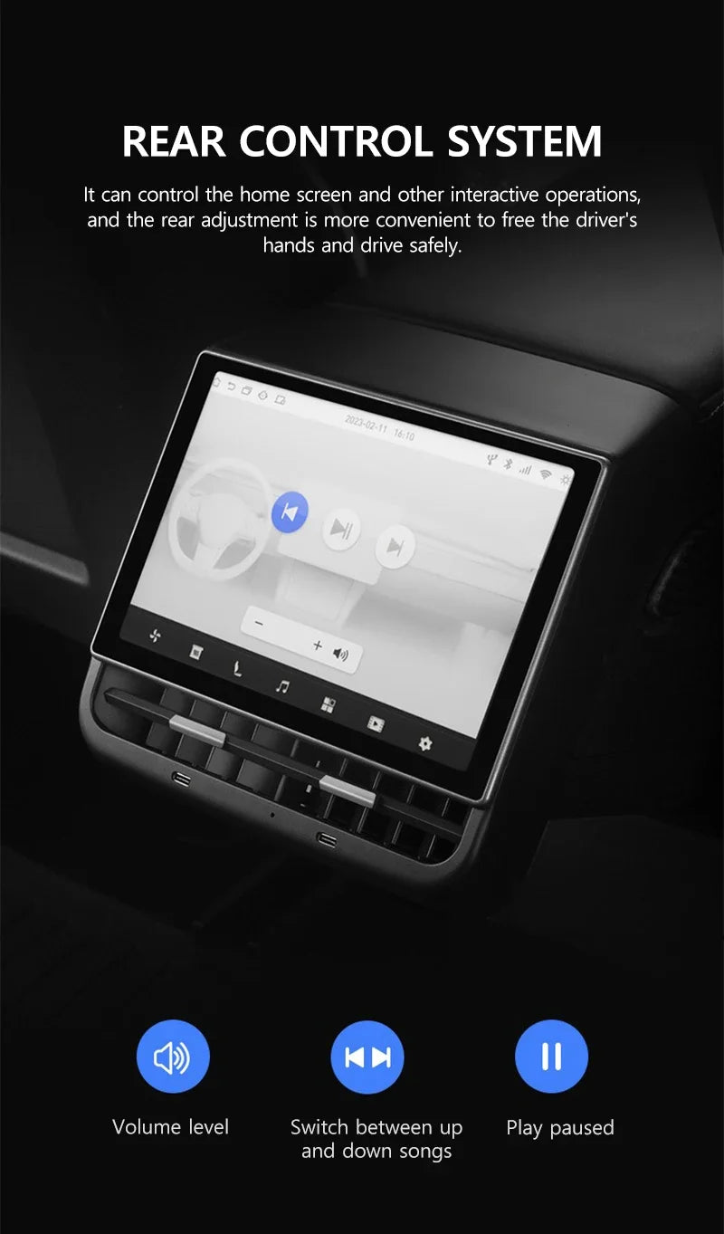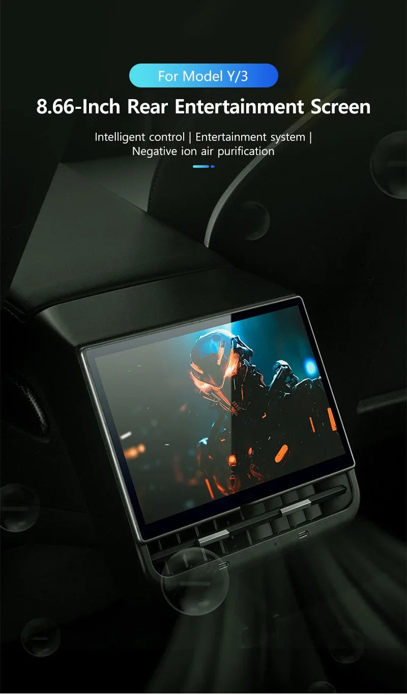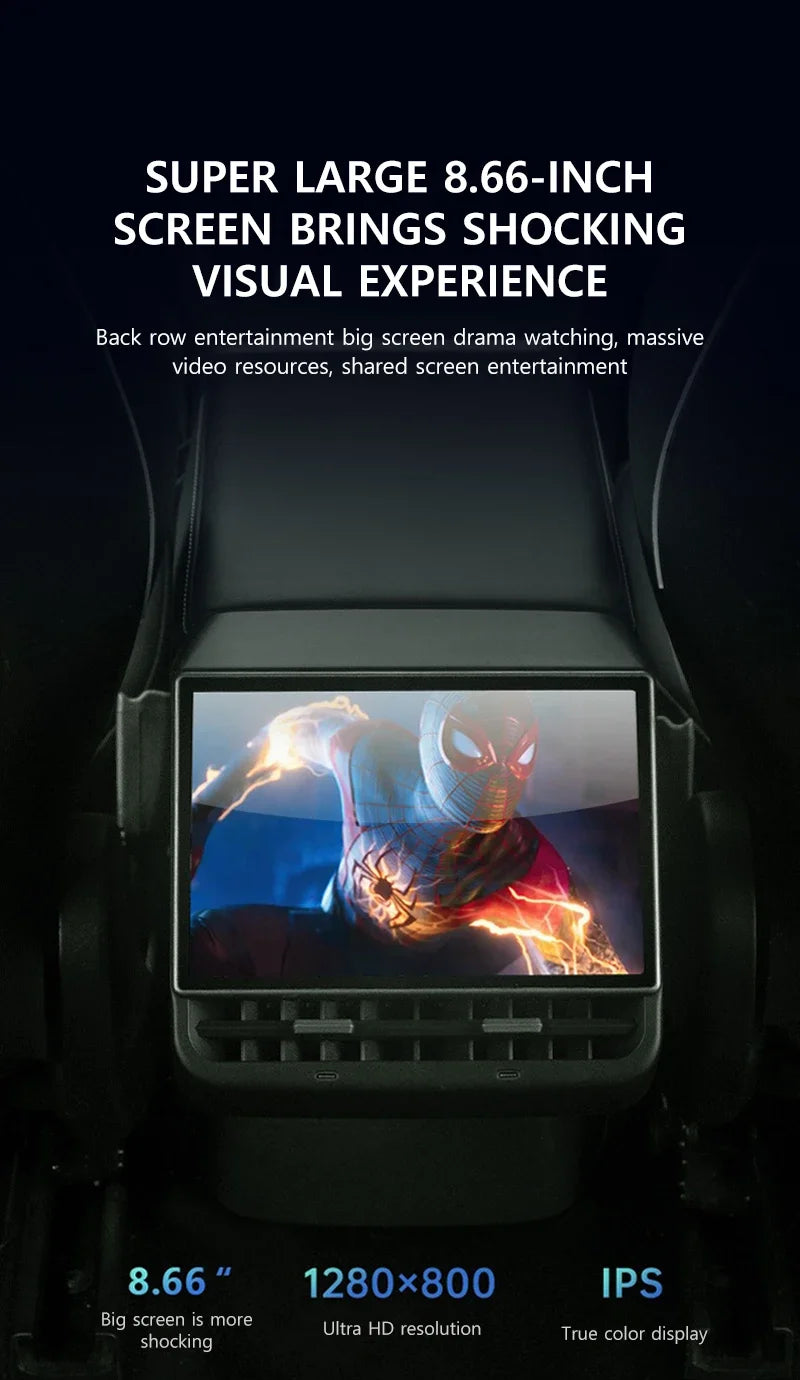 New Style 8.66 Inches Rear Display Android 13 WIFI Entertainment Screen 4G+64G Wireles Carplay Andriod Auto for Tesla Model Y 3