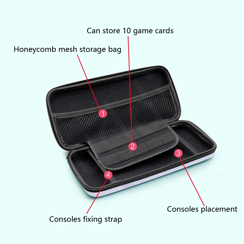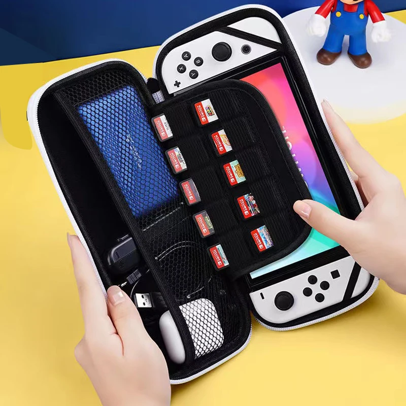 [High quality] The hard EVA shell ensures the safety of the switch and prevents accidental collisions, scratches, and drops. The soft flocking lining provides a comfortable home for your switch. The central soft cover prevents scratches on the screen. The extra elastic band prevents the OLED switch from accidentally falling.