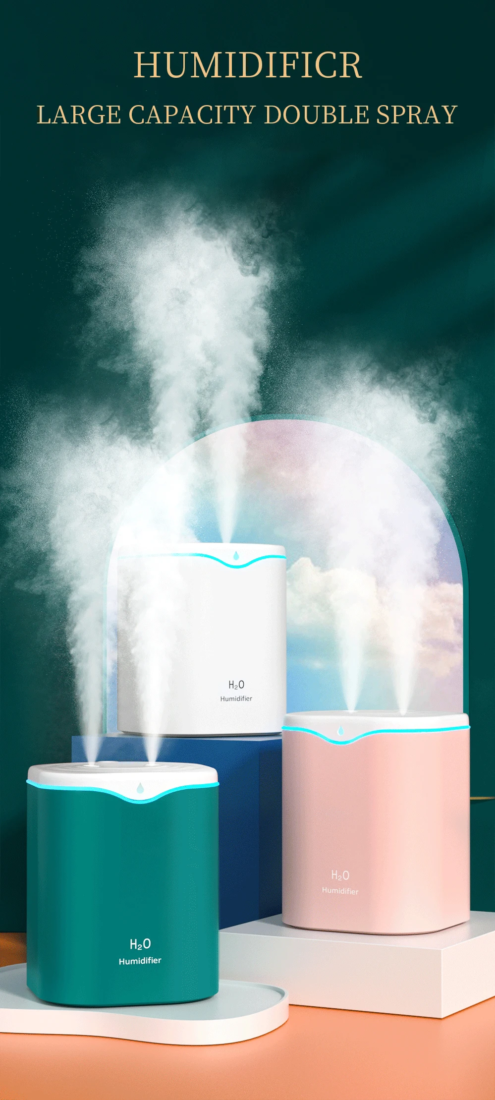 New USB Double Spray Humidifier Home USB Desktop Small Humidifier 2L Capacity Portable Clean Air Humidifier
