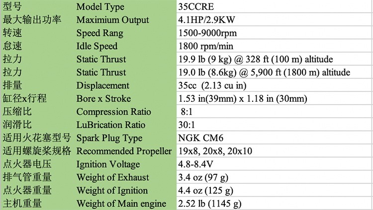 - Propeller : 19X8 7900rpm (Standard Two leafs prop)