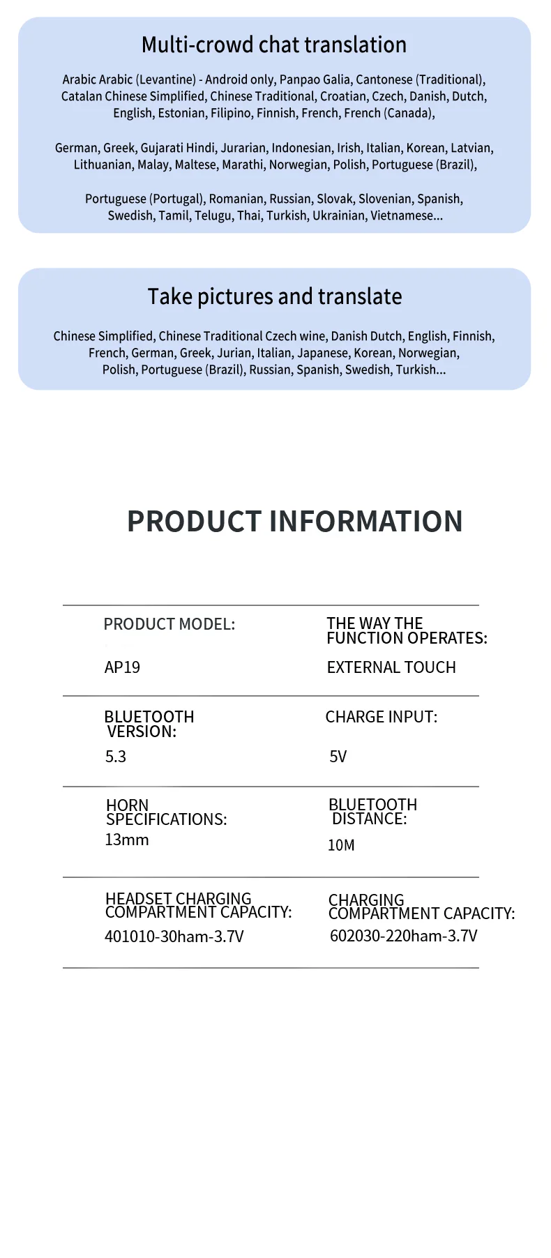 New Wireless translation earbuds multi-language overseas travel meeting face-to-face real-time translation AP19Bluetooth headset