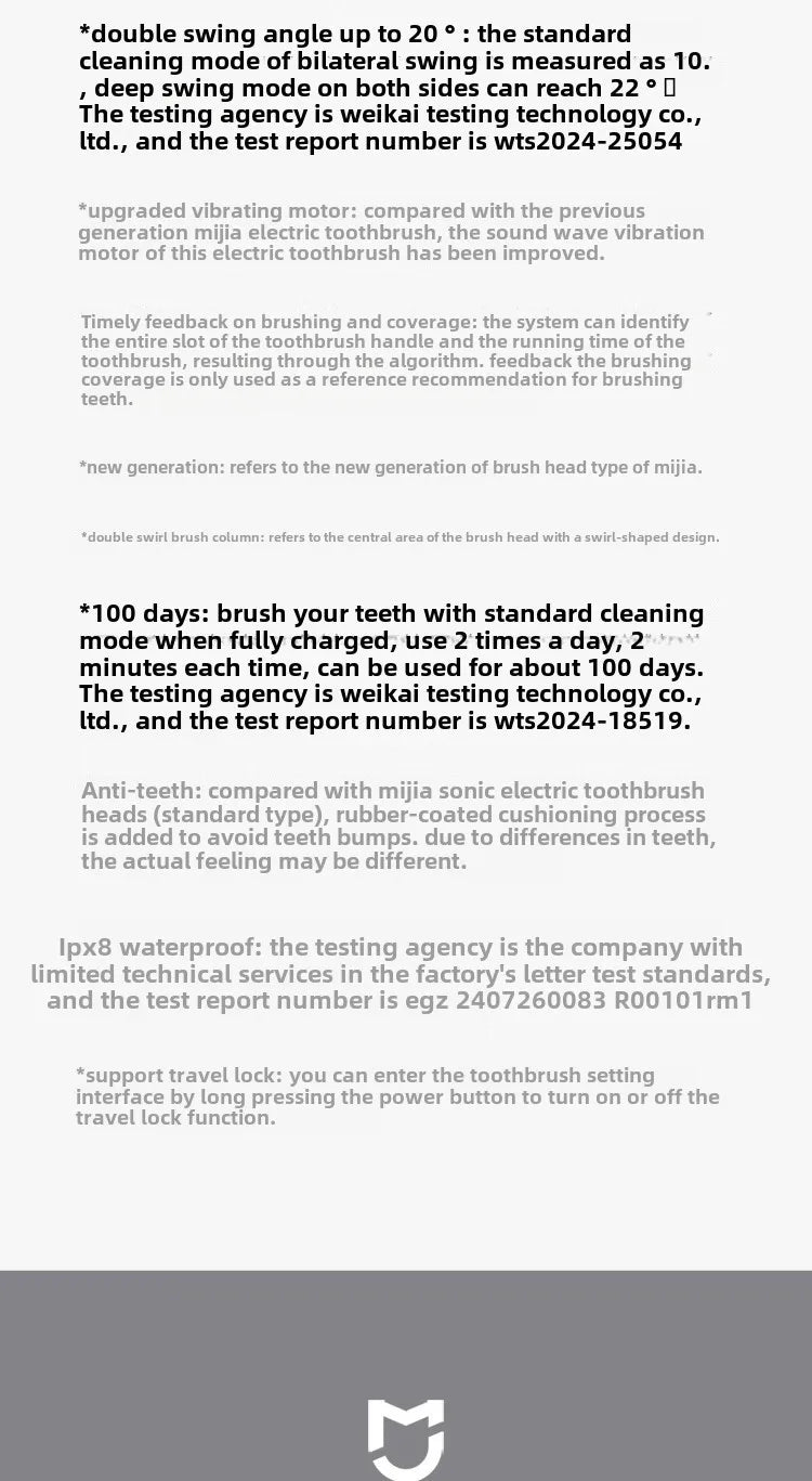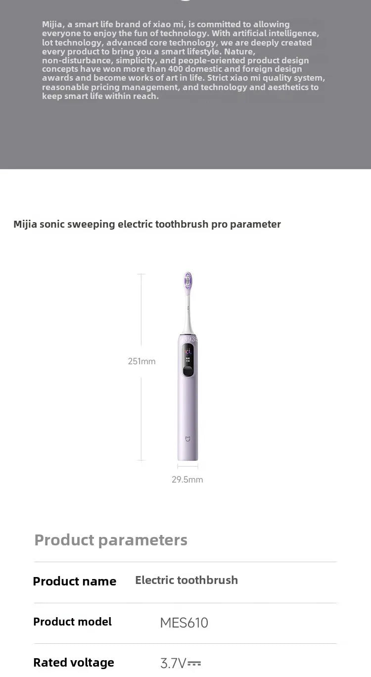 Mijia sonic sweeping electric toothbrush pro parameter