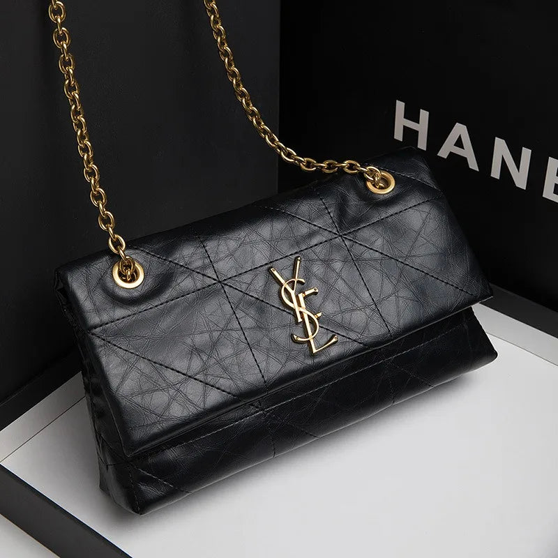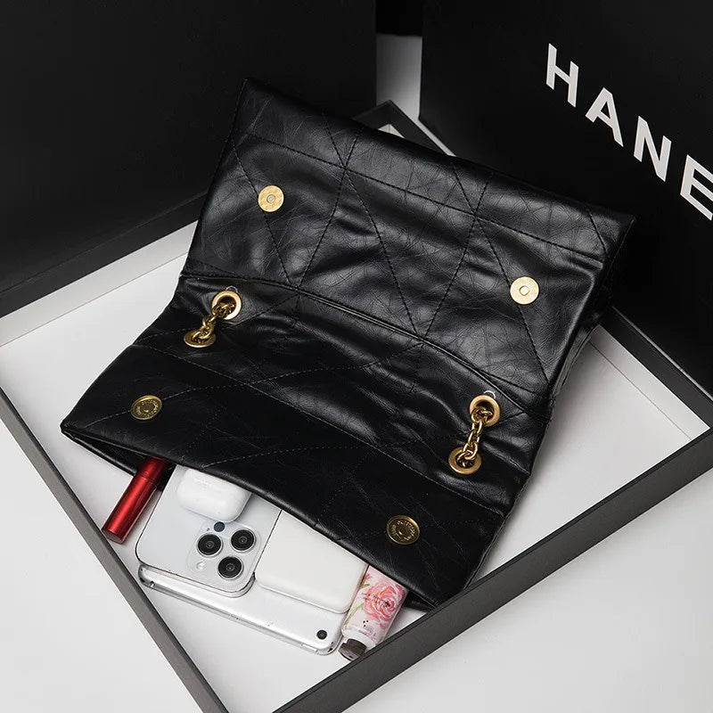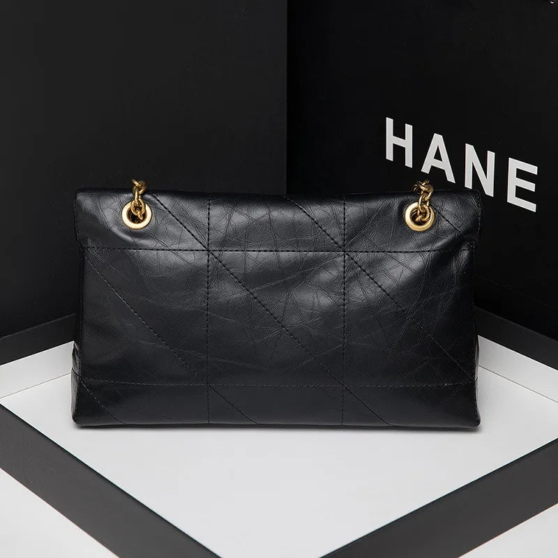 New Xiaoxiangfeng Ling grid chain genuine leather Ling grid bag armpit diagonal cross bag