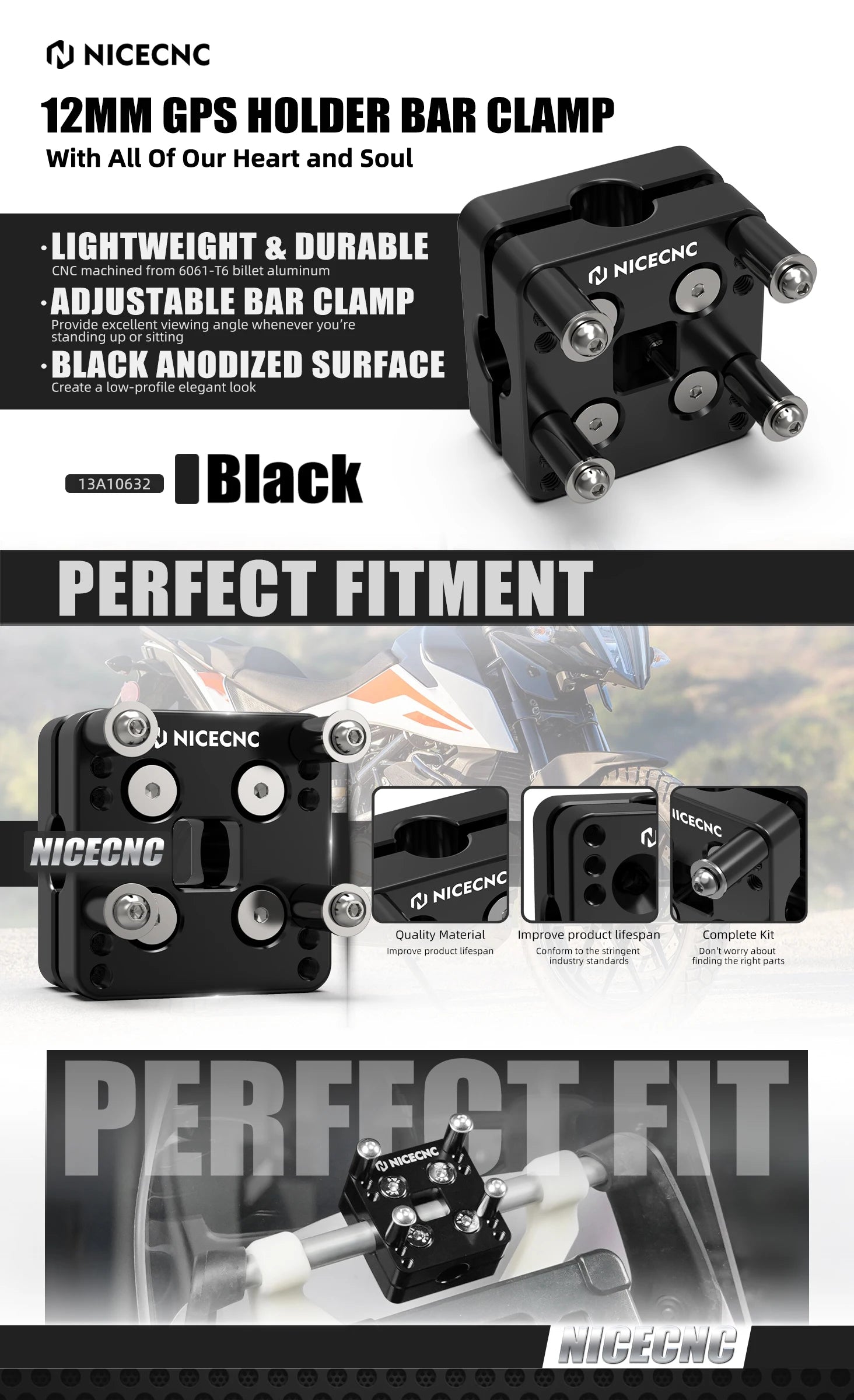 -NICECNC is proud to announce a billet aluminum bracket that clamps onto any handlebar with diameter of 28mm(1-1/8'') or 22mm(7/8'') for you to install Rally navigators.