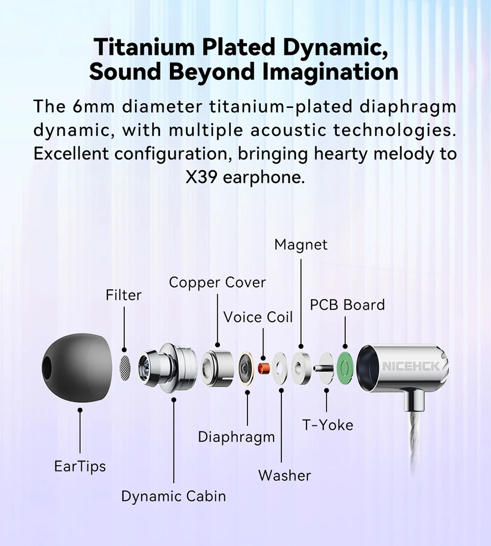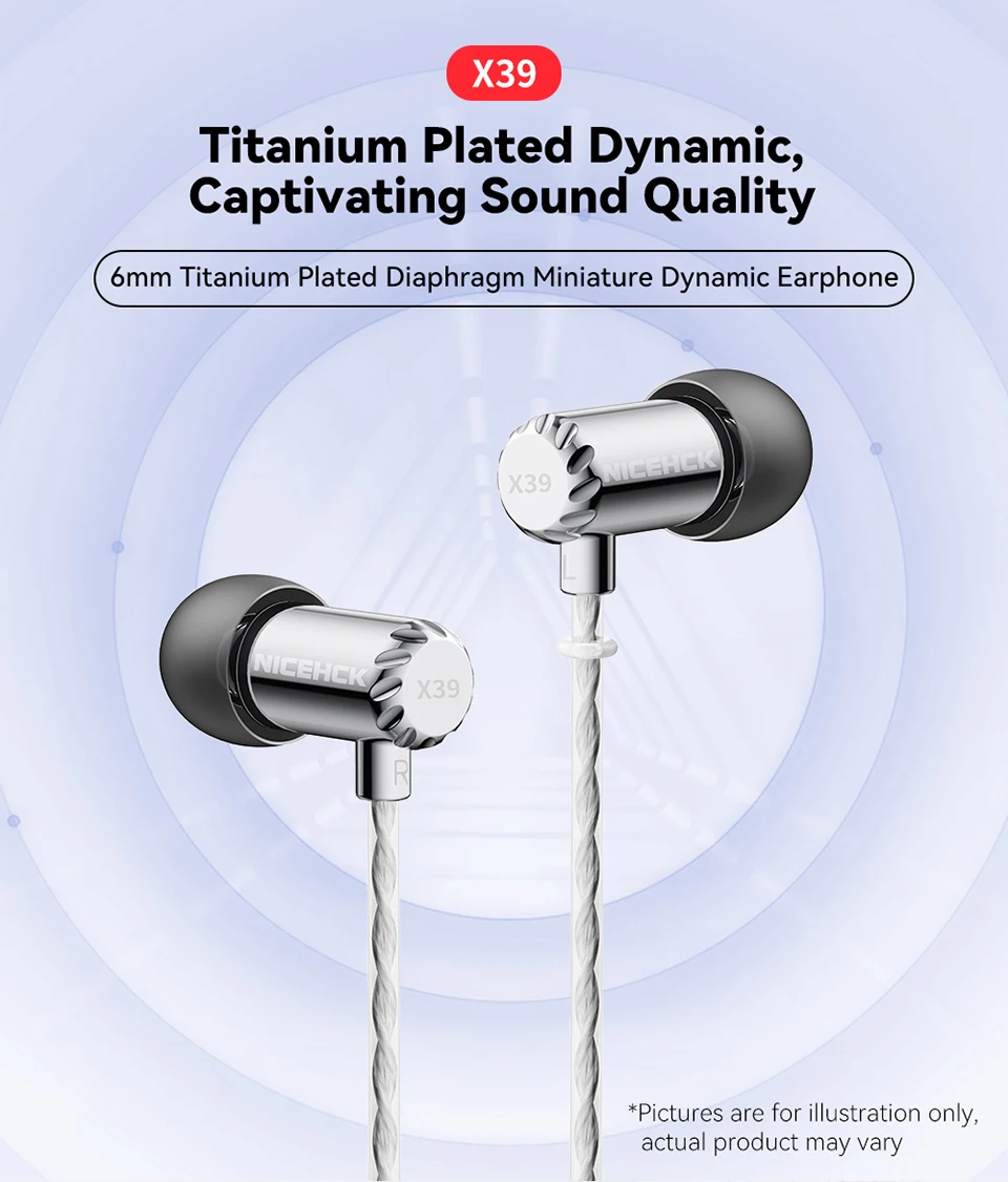 NICEHCK X39 IEM Aluminum Alloy Shell HIFI Microphone Earbud 6mm Titanium Plated Dynamic Headset Bass Vocal DJ In-ear Earphone