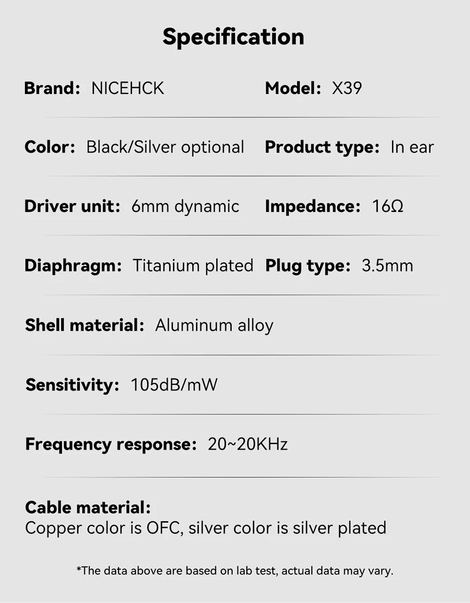 1. Product name: NICEHCK X39 HIFI In-Ear Earphone