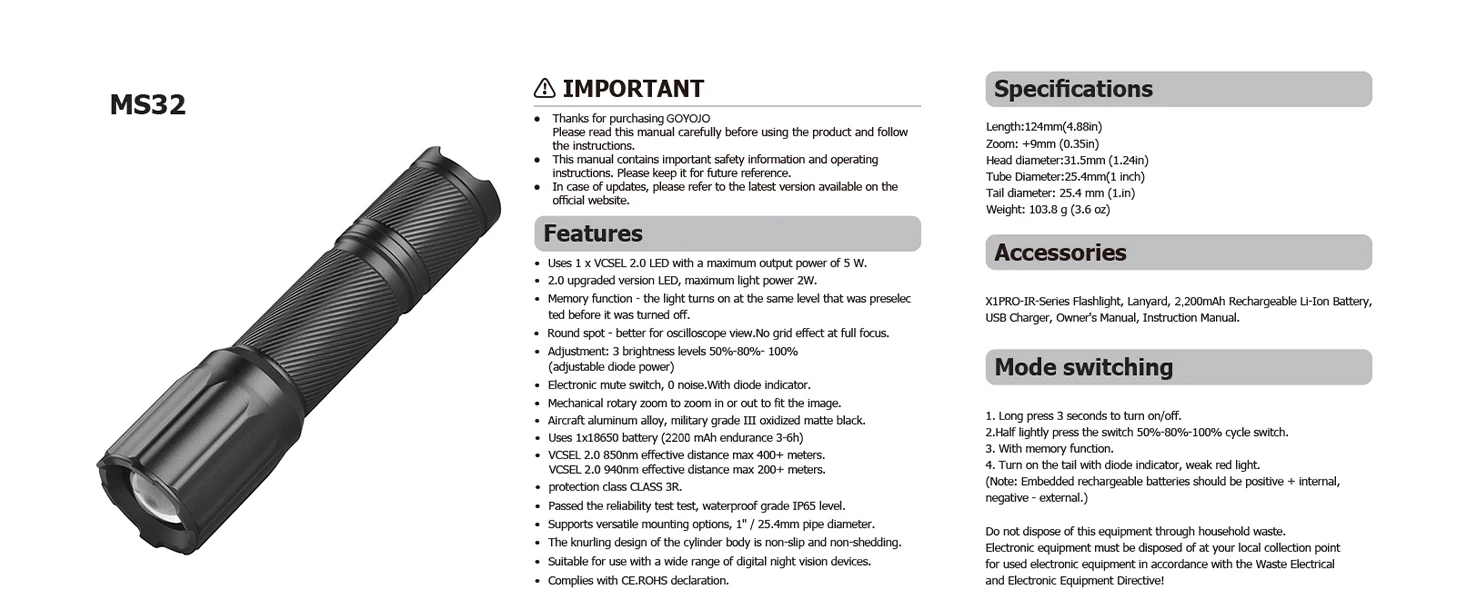 CRISP AND CLEAR VIEW -- The MS32 Night Vision Scope for rifles features a 1/3" CMOS sensor and 1280x720P resolution, providing a clear and detailed view of your target, even in low-light conditions. Say goodbye to blurry images and hello to accurate shots. Ideal for hunting, camping, and outdoor activities.