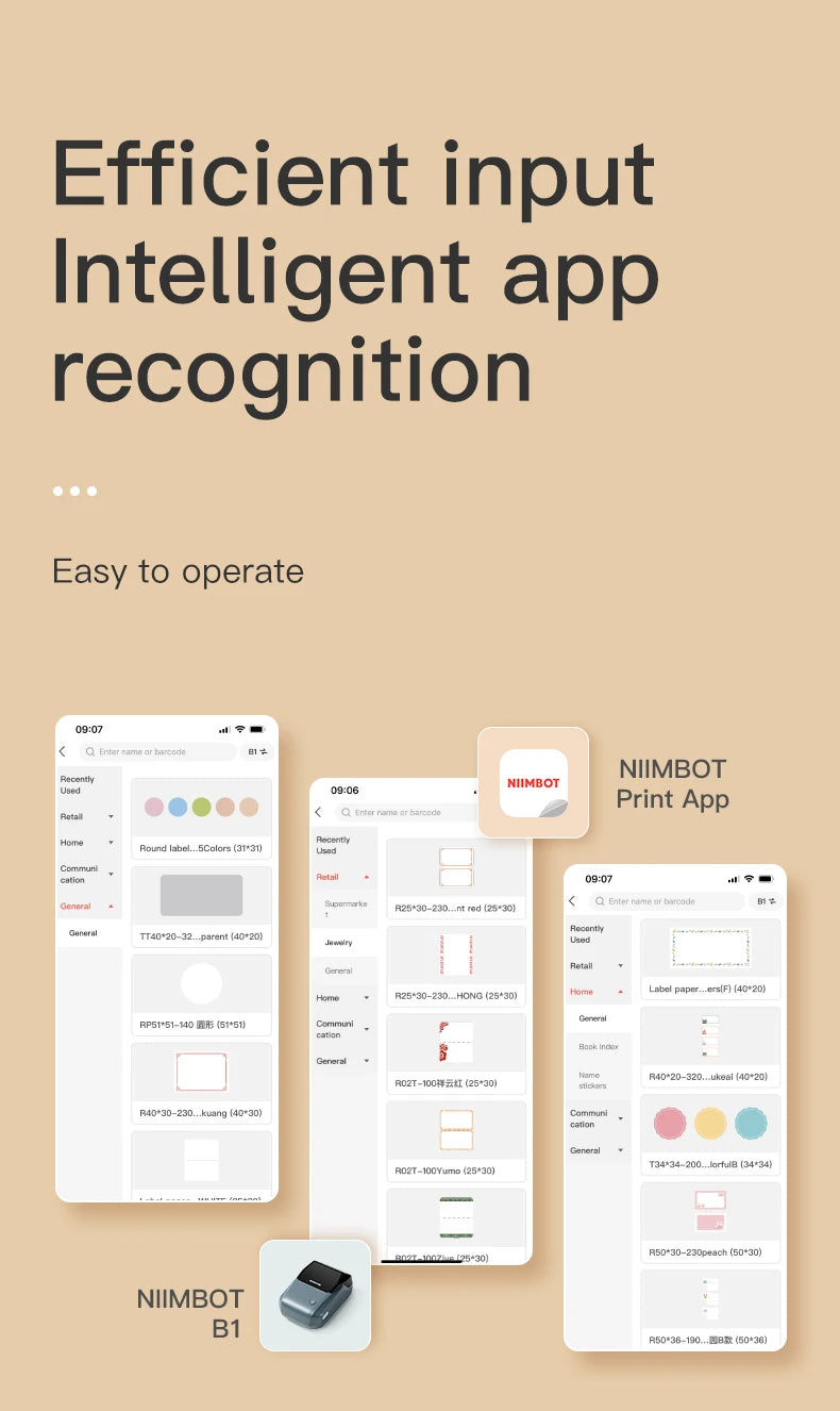 The app included more than support 30+ fonts/Languages, 100+ borders, and 1500+ symbols. Just need to download the free app, choosing and connecting printer model B1 from NIIMBOT APP, Then Enjoy Printing.