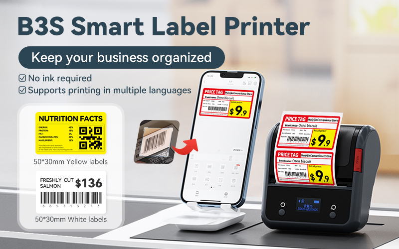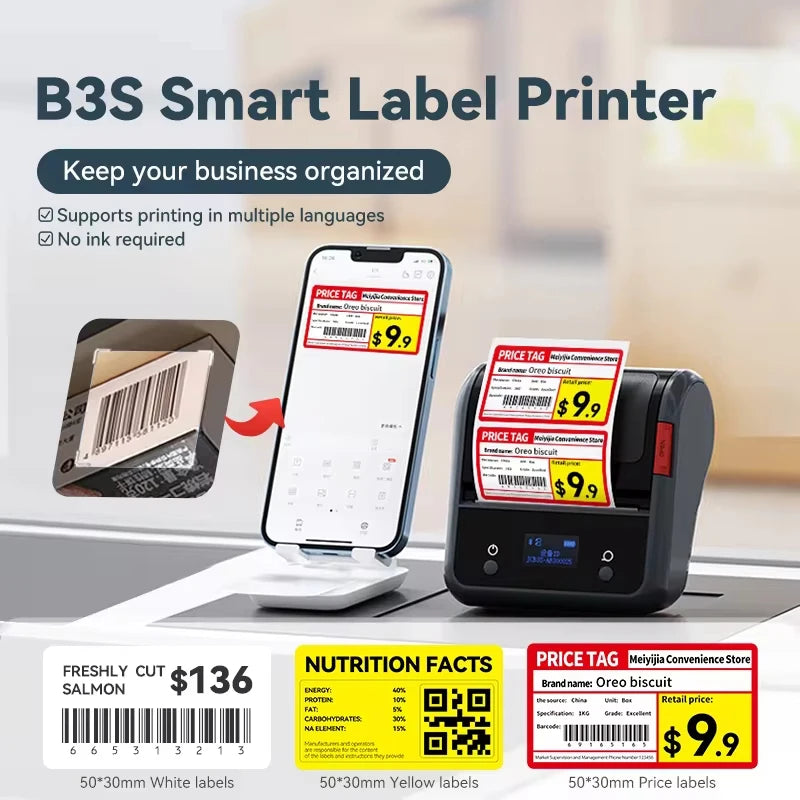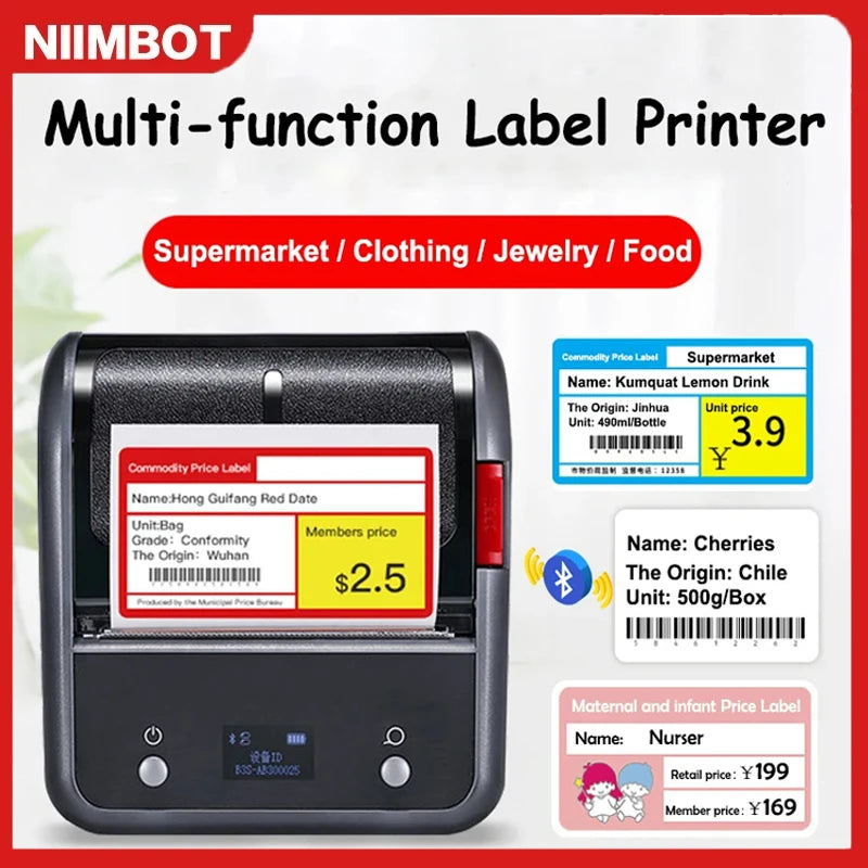 NIIMBOT B3S 75mm Portable Label Printer Inkless Wireless Bluetooth Self-Adhesive Thermal Sticker Maker For Small Business