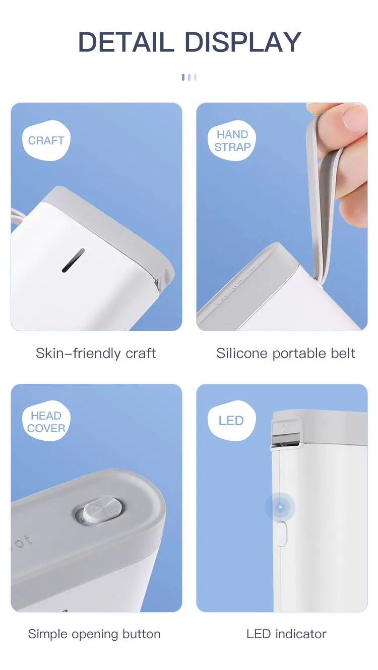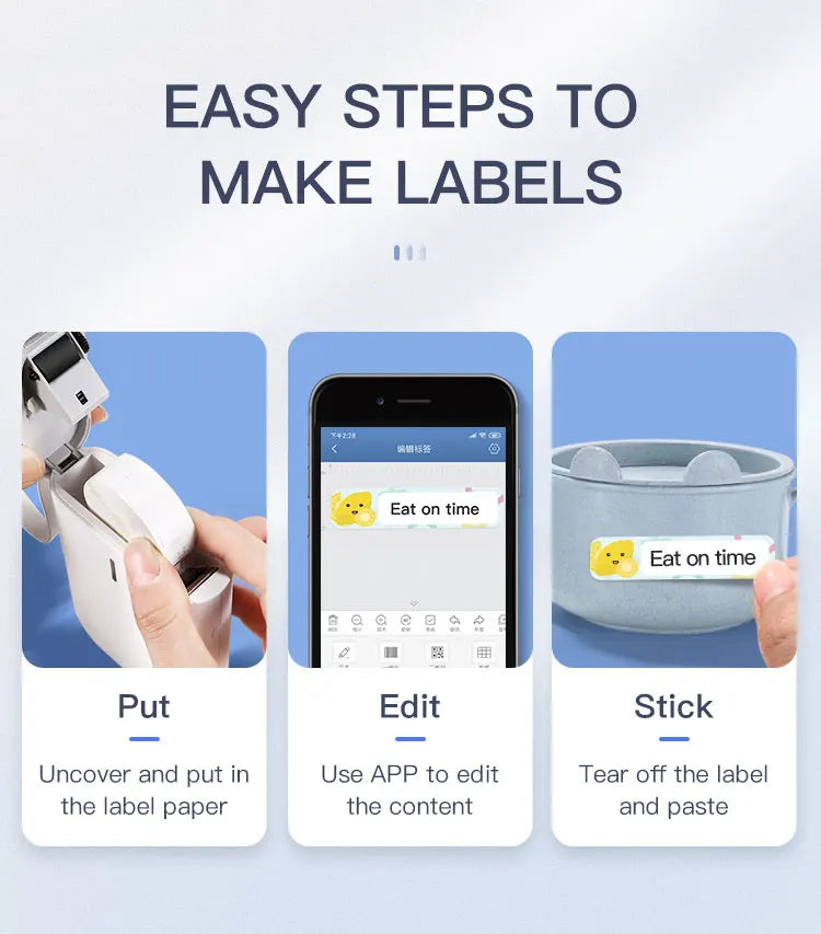 Wireless mini label maker can print within 10-meter away from the smartphone connected by Bluetooth.