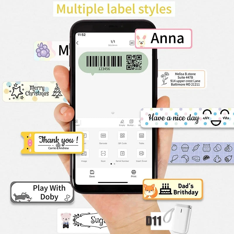 Niimbot D11 Mini Portable Printer For Mobile Thermal Adhesive Label Printer For Stickers Pocket Labeling Maker Machine Wireless