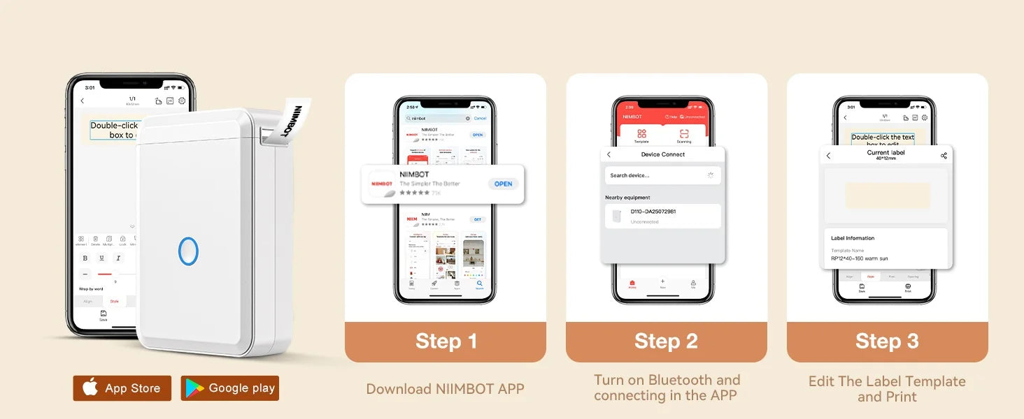 Easy to Use-This mini Bluetooth label printer prints stickers wirelessly. Download the ’NIIMBOT' app, and then connect and pair the Bluetooth via the app. The app included more than 60 +Fonts, 12+ Languages, and 400+ Borders. And it supports iOS & Android. (NOTE: This label maker doesn't work with computers)