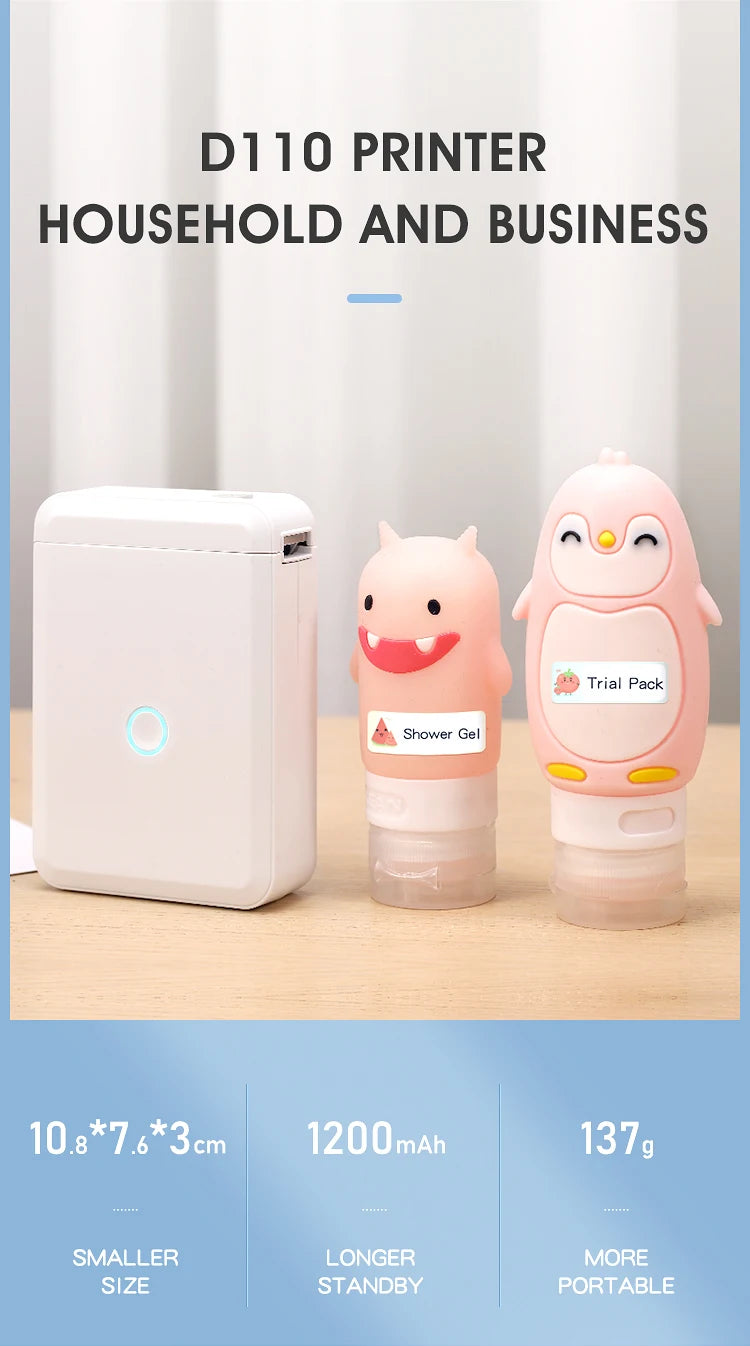 Niimbot D110 Portable Mini Printer Thermal Adhesive Sticker Multicolour And Multistyle Label Printer Inkless Label UV Printer