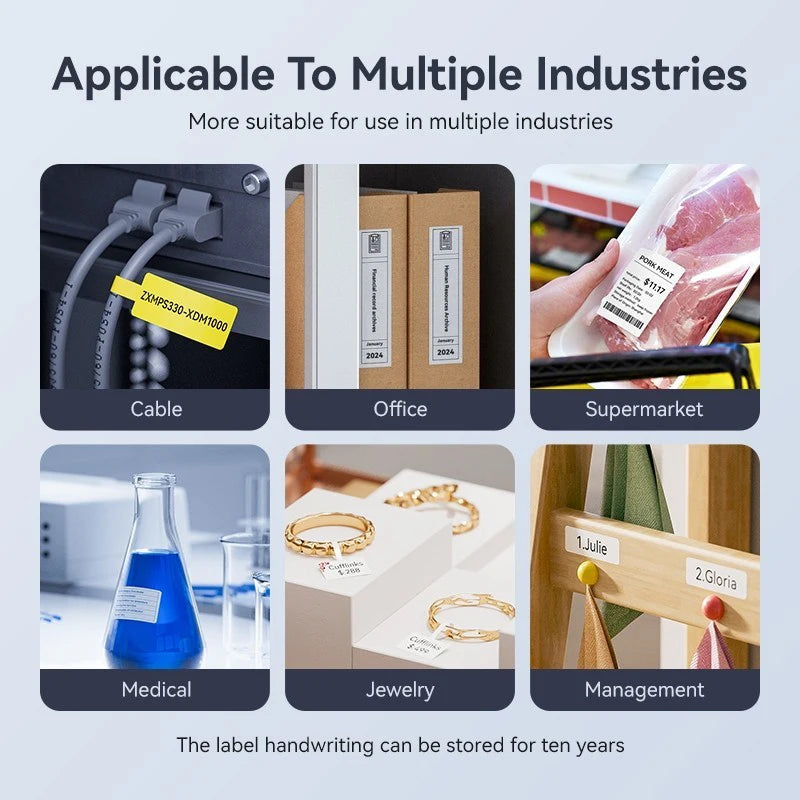 Wide Applications - M2 label making machines are widely used in office document classification, jewelry industry, school organizing management, medical identification, laboratories and small businesses. Suitable for storage of labels and classification labels in various harsh conditions indoors and outdoors, etc.