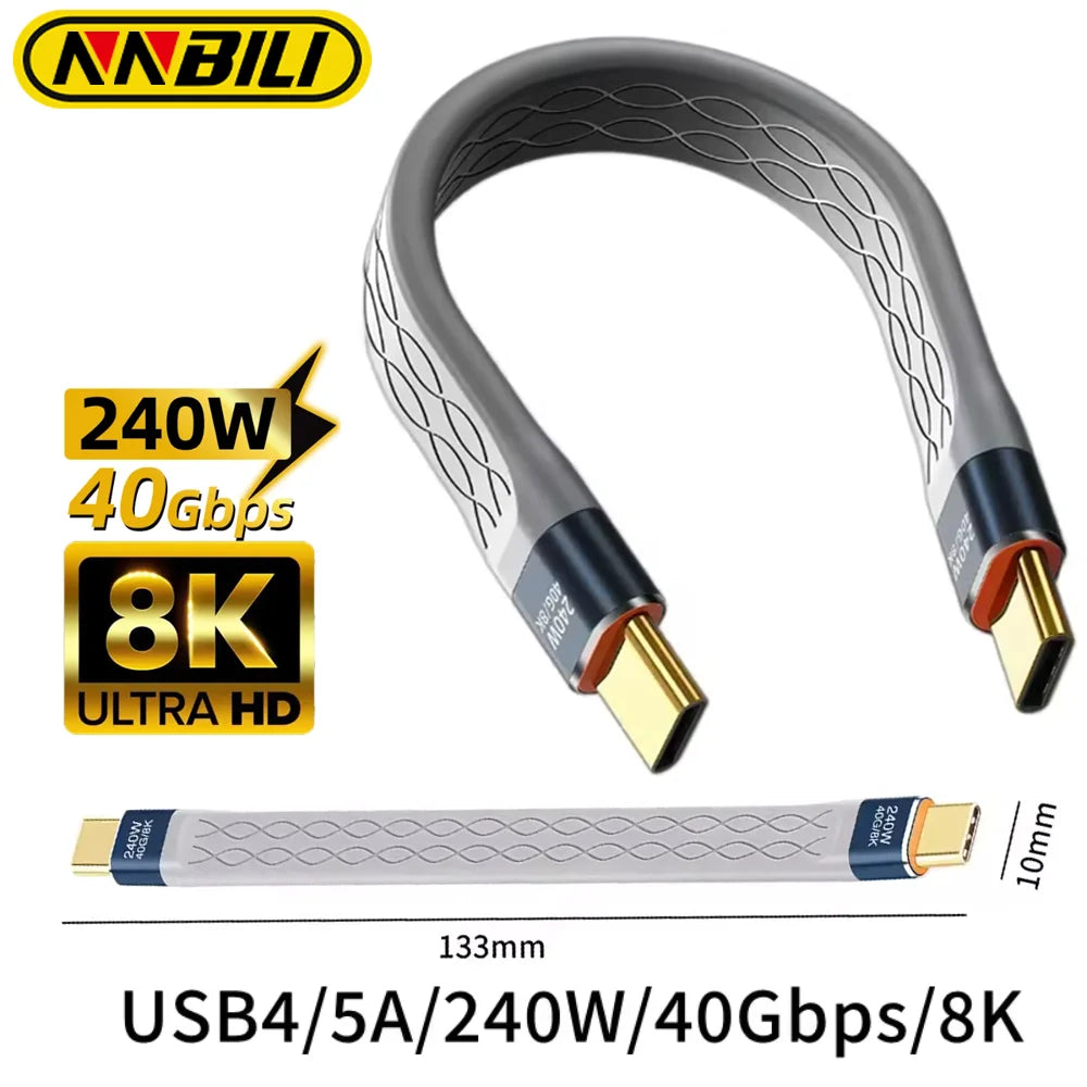NNBILI USB4 Data Cable 40Gbps USB C to Type C Short Cable PD 240W 8K 60Hz for Thunderbolt 3/4 iPhone 15 Pro Max SSD Power Bank