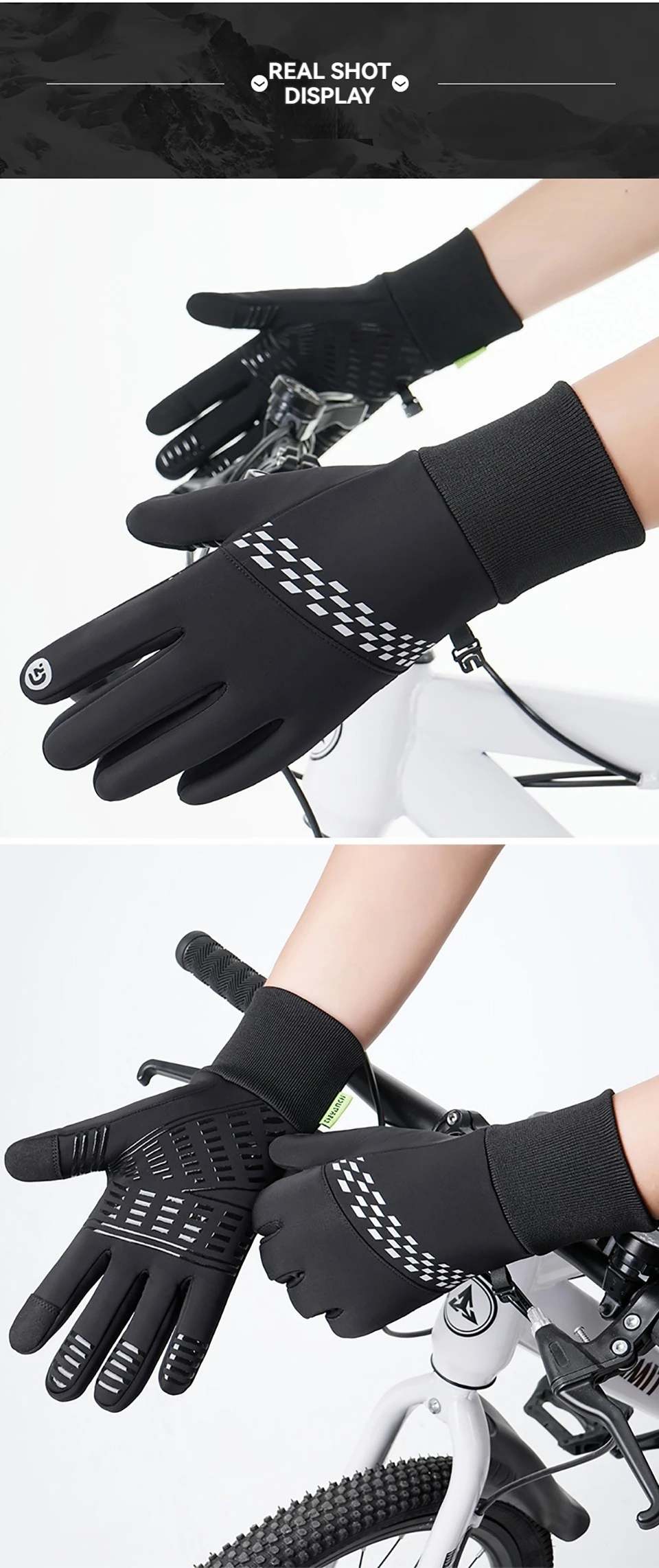NOFOXO 1Pair Winter Thermal Bike Gloves Touch Screen Water Resistant Windproof Cycling Driving Hiking Skiing Running Men Women