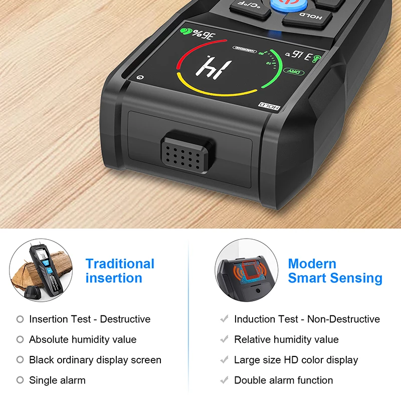 Non-Contact Wood Moisture Meter Inductive Wood Timber Moisture Meter Color Screen Digital Electromagnetic Wood Humidity Tester